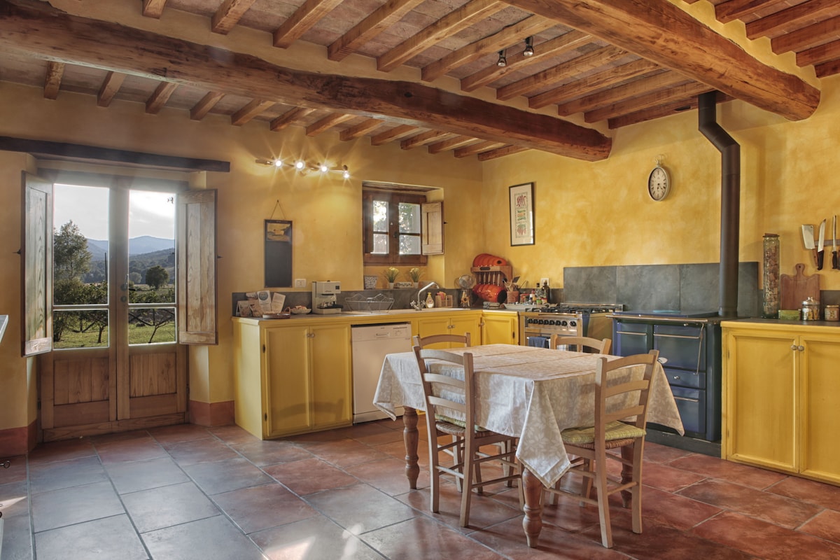 Inspired by the rustic Tuscan style, this gorgeously refurbished hayloft features ceilings with exposed beams and bricks and thoughtful touches for a stylish and comfortable decor. From the relaxing hammock and the stone made barbecue in a panoramic garden to the cozy fireplace, every space feels open and inviting. Immersed in total peace and tranquillity with a breathtaking view over the Chianti hills, halfway between Florence, Arezzo and Siena, the barn is a perfect homebase to visit Tuscany. The accommodation has 2 floors. The upper floor spaces 2 double bedrooms with wonderful views of the olive trees and a bathroom with window and large masonry shower. On the ground floor a cozy and spacious living area with fireplace and a kitchenette with gas stove a large fridge and oven. The barn has ceilings with exposed beams and bricks. Outside there is a panoramic garden set on its own where, in the shade of a walnut trees, you can relax on a hammock or grill your meal (included an authentic local Fiorentina steak :-) on the stone made barbecue. A garden table is there for romantic dinners 'al fresco'. Immersed in total peace and tranquility halfway between Florence, Arezzo and Siena the barn is a perfect homebase to visit Tuscany. To find the exact location of the house type the following code in GMaps: 8FMHGG25+QV The house is in the countryside. The closest towns are Cavriglia and the small Medioeval villages of Moncioni and Montegonzi. In each town you can find great local restaurants and a small grocery shop. Moncioni is 3 km far away. A big supermarket is located in Montevarchi and you can reach it in 8 minutes by car ( exactly 7 km far away). In Montevarchi you can also find one of the best farmer markets in Tuscany! The station of Montevarchi is 8 km away from the barn. From there you can take train to Florence and Arezzo. Siena can be reached in 30 minutes by car. The easy access to the motorway A1/E35 Milan-Florence-Rome (the Valdarno exit is only at 13 km) allows you to reach numerous interesting spots within a short time, both in Tuscany and Umbria, while few kilometres south of Cavriglia you enter the suggestive territory of the Crete Senesi. Out in the countryside, the home offers an authentic experience of Tuscany. Small towns and villages are a short drive away providing acces to exceptional local restaurants and fantastic farmers markets. A big supermarket is located in Montevarchi (7 km far away). The railway station is 8 km away from the barn. From there you can take train to Florence and Arezzo. Cities of interest like Siena, Montepulciano, Pienza and Monteriggioni can be reached in 40 minutes by car The only way to reach the house is by car. A taxi service is active from Montevarchi You will be provided of blankets and towels. The kitchen is equipped with and kind of pots, pans, bowl, plates and silverware. You are welcome to use them. Free Netflix available
