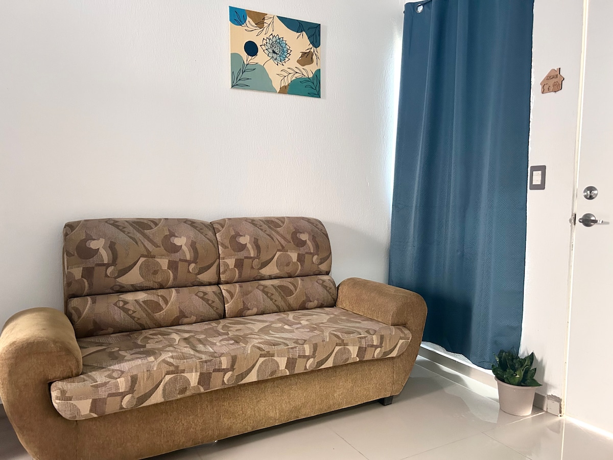 Comodo y acogedor espacio ideal para familias pequeñas hasta 5 personas con todo lo que necesitas, ubicado en una residencial tranquila y segura sin ruidos a solo 2 minutos del Periférico Gerardo Barrios. Contaras con utensilios de cocina, cocina con horno, microondas, refrigerador, lavadora, dos comodas habitaciones, baño completo y una hermosa terraza, sofa cama, TV e internet de alta velocidad de hasta 200Mb. Cochera para 2 vehículos, piscina comunitaria y parque para niños.