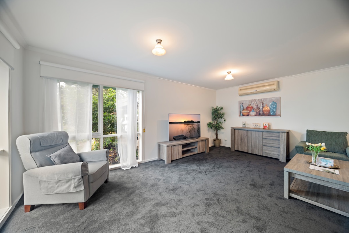 Experience comfort and convenience in this spacious 4-bedroom home: - 5 beds, 2 bathrooms, an office, kids’ play area, and a backyard with a patio. - Enjoy three dining spaces: indoors, under a covered patio, and outside with an umbrella and stunning views. - A 15-min walk to 1001 Steps, close to shops, Lysterfield, and Berwick Botanic Park. - Free Wi-Fi, Netflix, a large smart TV. - A Bosch-equipped kitchen, laundry facilities. - And parking for up to four cars. Relax and unwind.