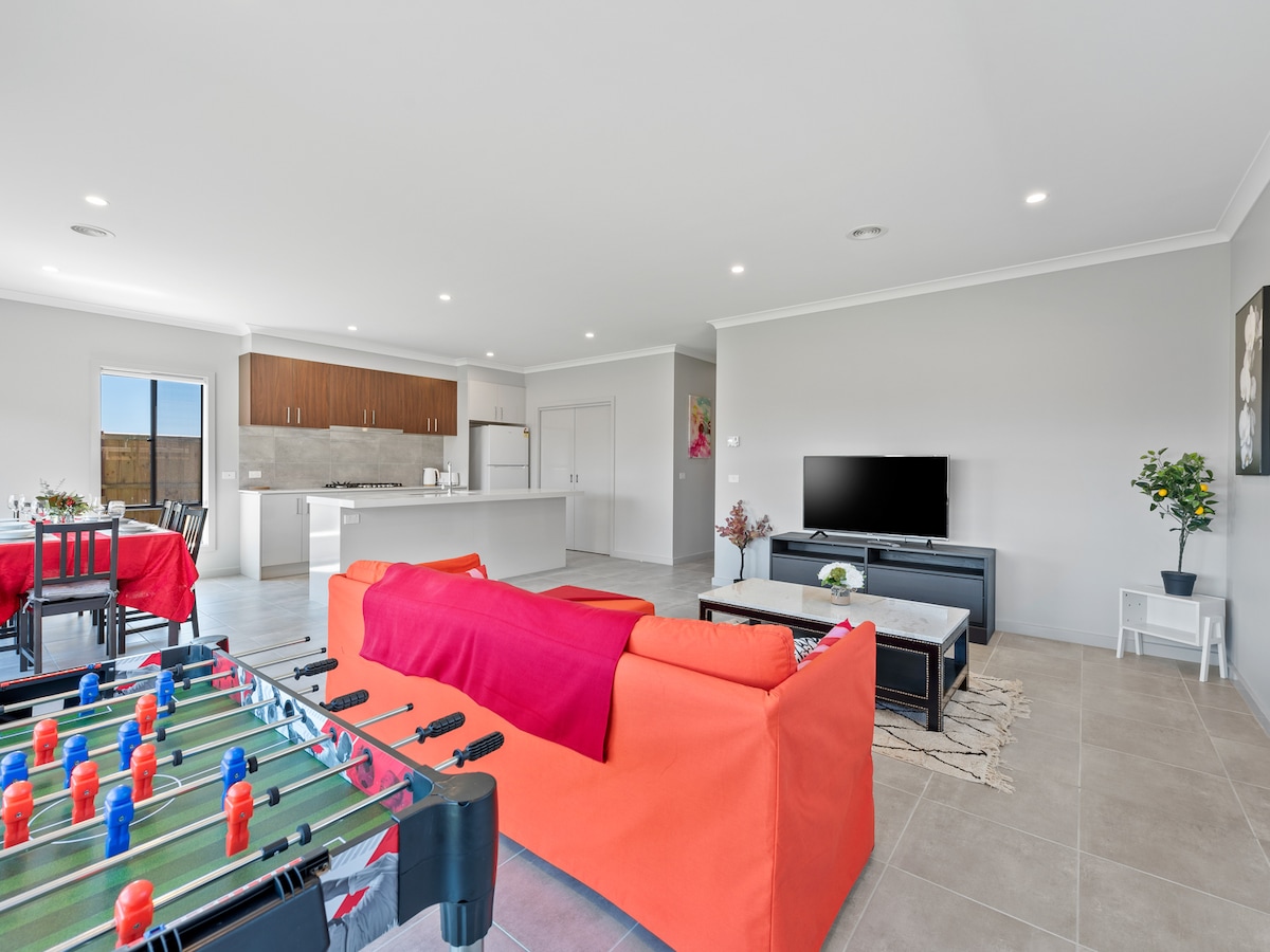 Relax with the whole family in this brand new home, it is the perfect blend of comfort and convenience, making it an ideal choice for your next getaway. The spacious interior is decorated and equipped with everything you need for a relaxing stay. Just around the corner you'll find bustling shopping center with a variety of stores, cafes, and restaurants. Whether you're here for a weekend escape or an extended stay, our home provides the perfect base for exploring all that Gippsland has to offer.