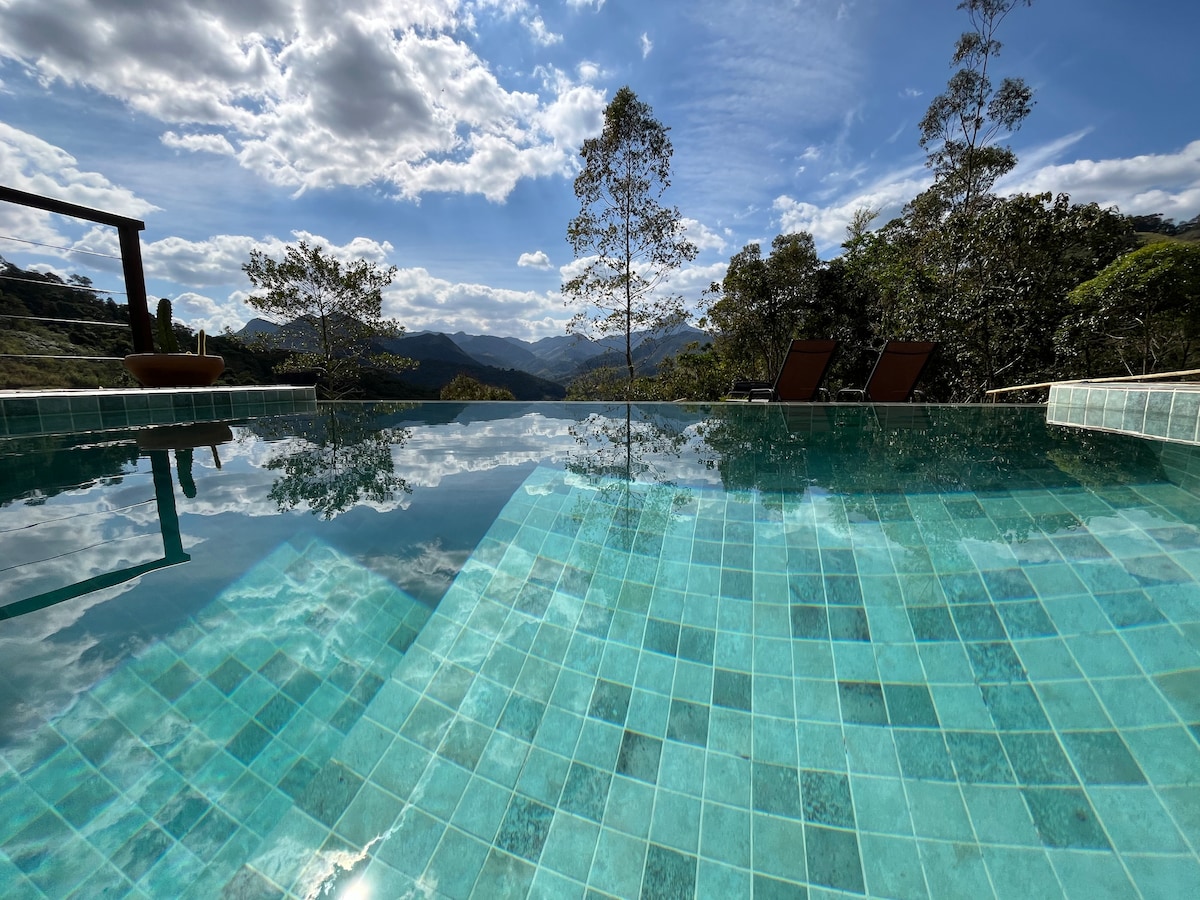 Bem vinda (o) ao @nossocanto_serrarj. Aproveite na montanha o charme moderno desta casa. Casa com piscina, churrasqueira, fogueira externa, de frente ao Rio e com um céu estrelado nas noites claras. São dois quartos (suites) com ar condicionado, camas de excelente qualidade e um barulho do Rio confortante e temos wifi a fibra. Caso queira uma pessoa para ajudar com a limpeza e comida durante a estadia, indicamos profissionais da região com o pagamento direto à ajudante.