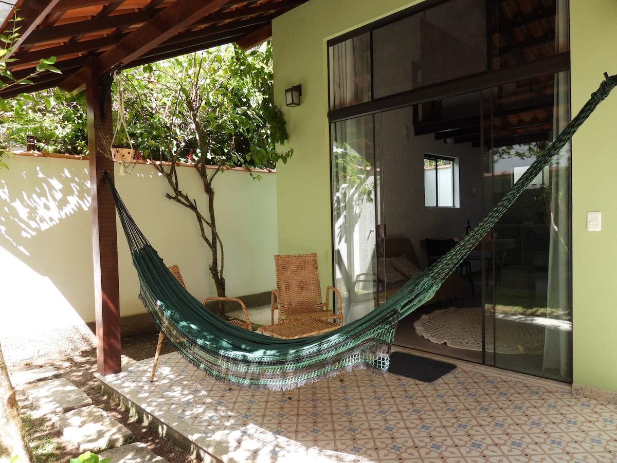 Casa aconchegante com linda vista, cercada por deck de madeira, muita natureza e paz há 500 metros da praça do suspiro. Total privacidade, ninguém tem vista pra o interior da casa, rua sem saída e sem circulação, só se houve barulho dos pássaros. A casa fica no bairro centro, mas obviamente com seu perfil não na avenida central onde só há prédios, porém de carro não dá nem 2 minutos. É possível ir a pé, porém há um trecho de ladeira na rua de acesso e a casa tem escada.