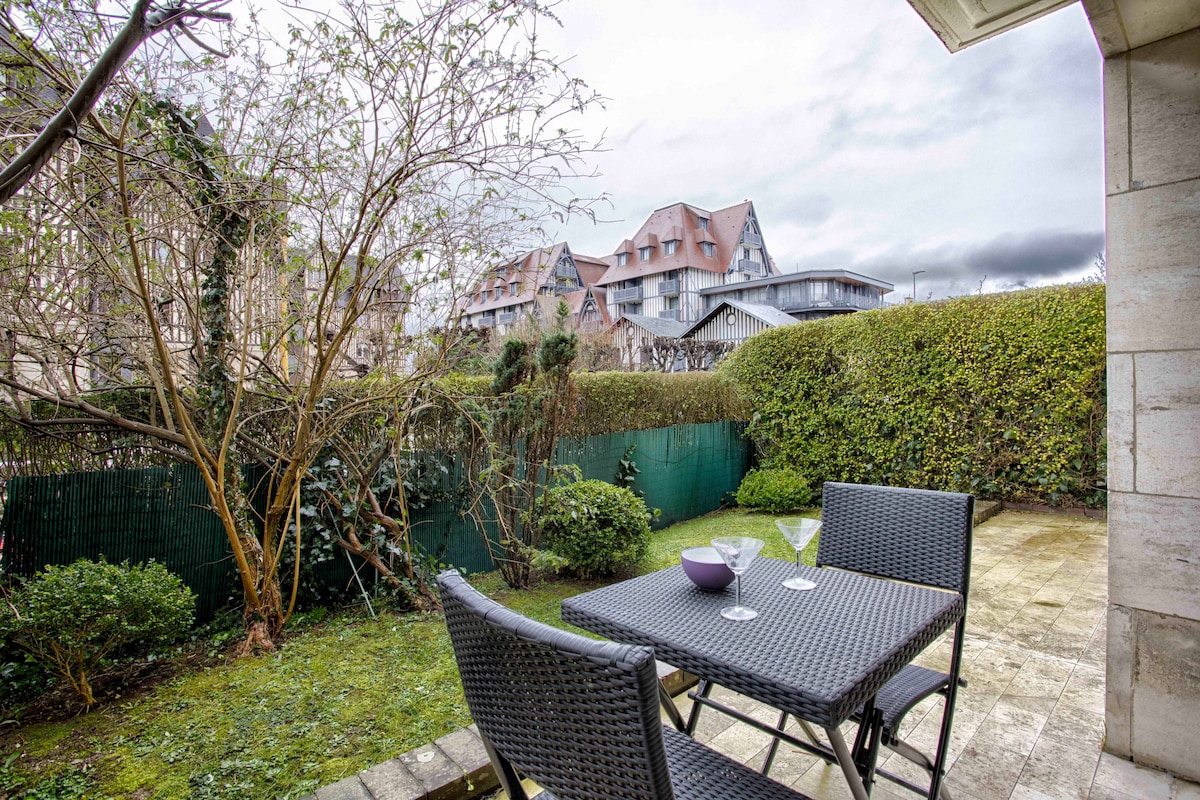 Grand et beau studio, en plein cœur de Deauville! Face au Casino et a proximité de tous les commerces! Calme et lumineux il est composé d'une grande entrée, d'une grande salle de bains avec WC (douche à l'italienne), d'un séjour spacieux et cosy avec balcon donnant sur un très joli jardin paysagé intérieur. La cuisine est entièrement équipée. Lit de qualité hôtelière . Le studio est situé dans une résidence de standing avec ascenseur. Le calme au cœur de l'agitation!