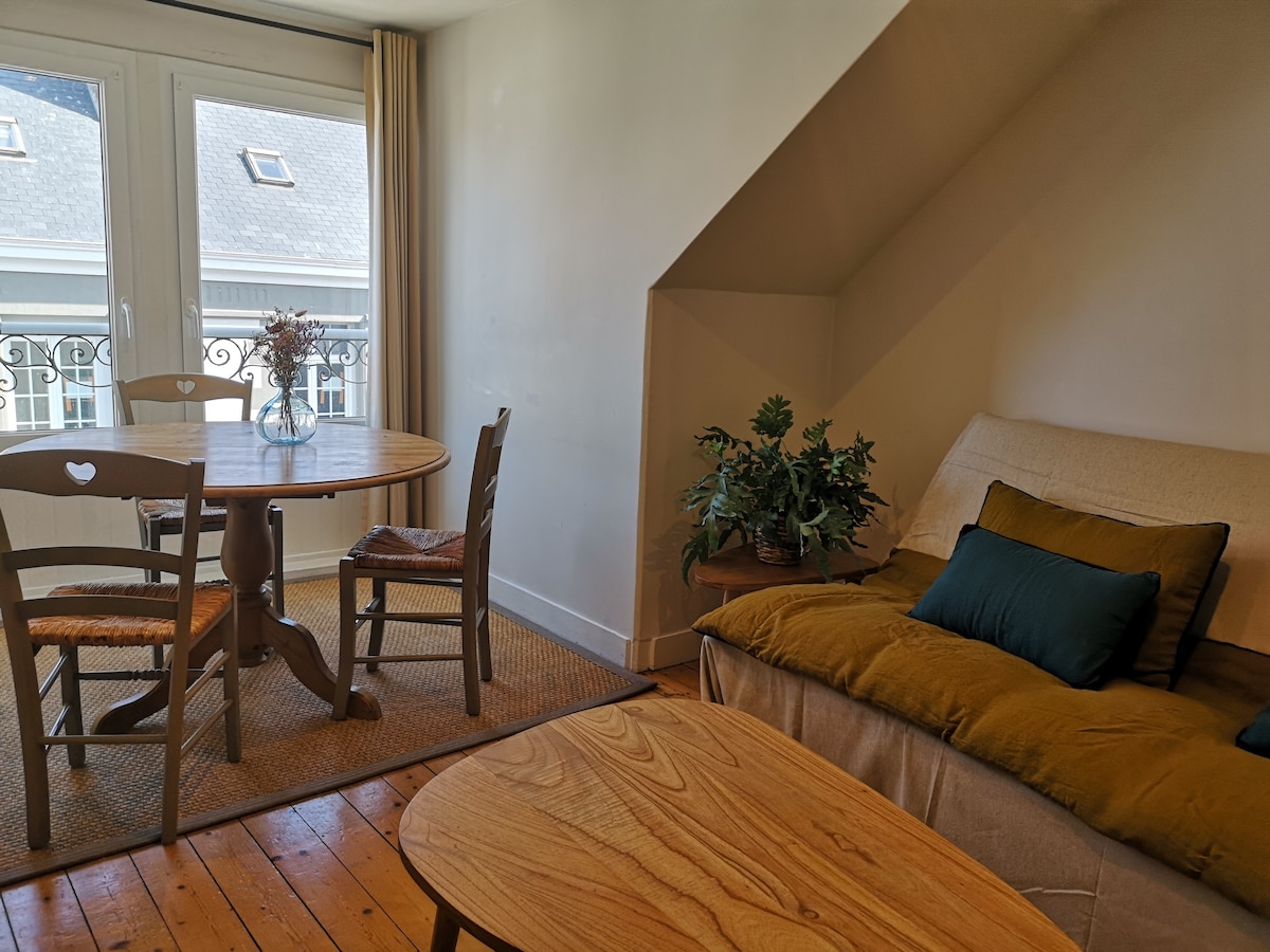 Charmant appartement 65 m² en duplex dans le centre de Dinard, à 1mn de la plage de l’Ecluse et de l’embarcadère des vedettes pour St-Malo, et 5mn du centre-ville. Le linge de maison (draps et serviettes) est fourni, et les lits seront fait à votre arrivée. Attention : les chambres et la cuisine sont assez basses de plafond, l’appartement n’est pas recommandé pour les personnes de plus de 1m85.