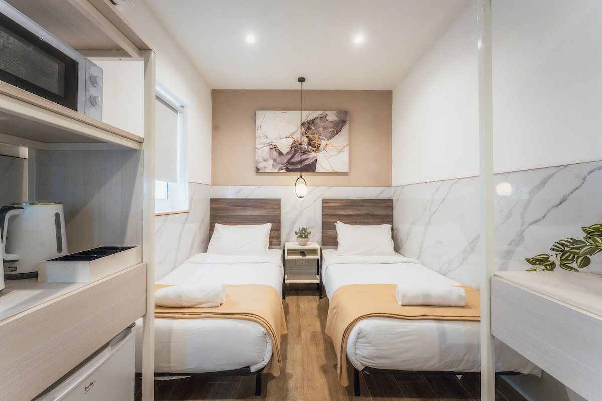 Unveiling OLO Living Guesthouse by SF Homes! Set in the vibrant core of Paceville, moments from all conveniences and a mere 200 meters from the renowned St. George's Bay. Your room offers a kitchenette (fridge, microwave, toaster & sink), two single beds, an eight-square-meter private yard, and a private bathroom. Enjoy exclusive guest benefits at our interconnected facilities: Tango & Fork restaurant, Solarium Tanning Salon, and Coin Laundry Services. Don't miss out—secure your stay now!