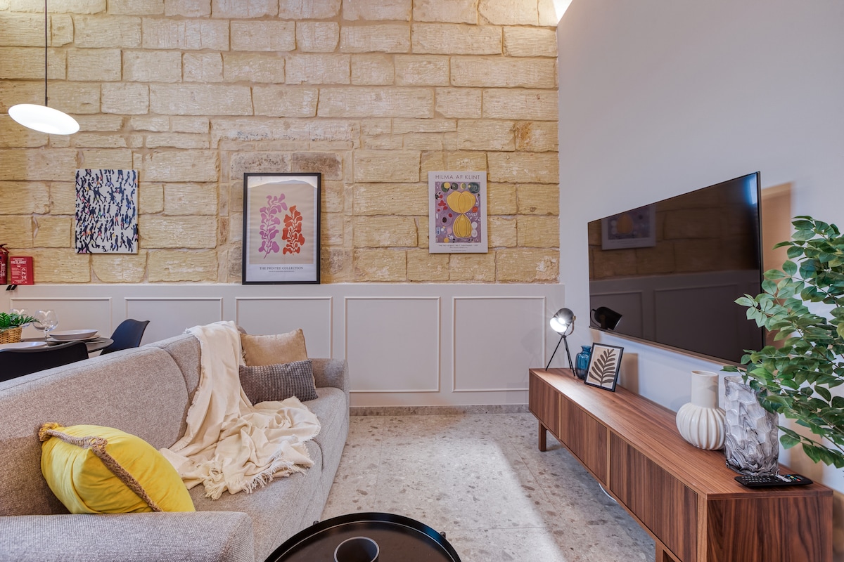 Welcome to our lovingly restored 100-year-old Sliema townhouse! We spent three years bringing this place back to life, keeping its original Maltese limestone, timber beams, and stone ceilings while adding modern comforts. Your stylish 1-bedroom suite, with a comfy sofa bed in the living room, offers a cozy, fully equipped stay. The highlight? A serene garden, perfect for morning coffee or evening drinks. Just a short walk to the sea, culture, and great dining—immerse yourself in Sliema’s charm