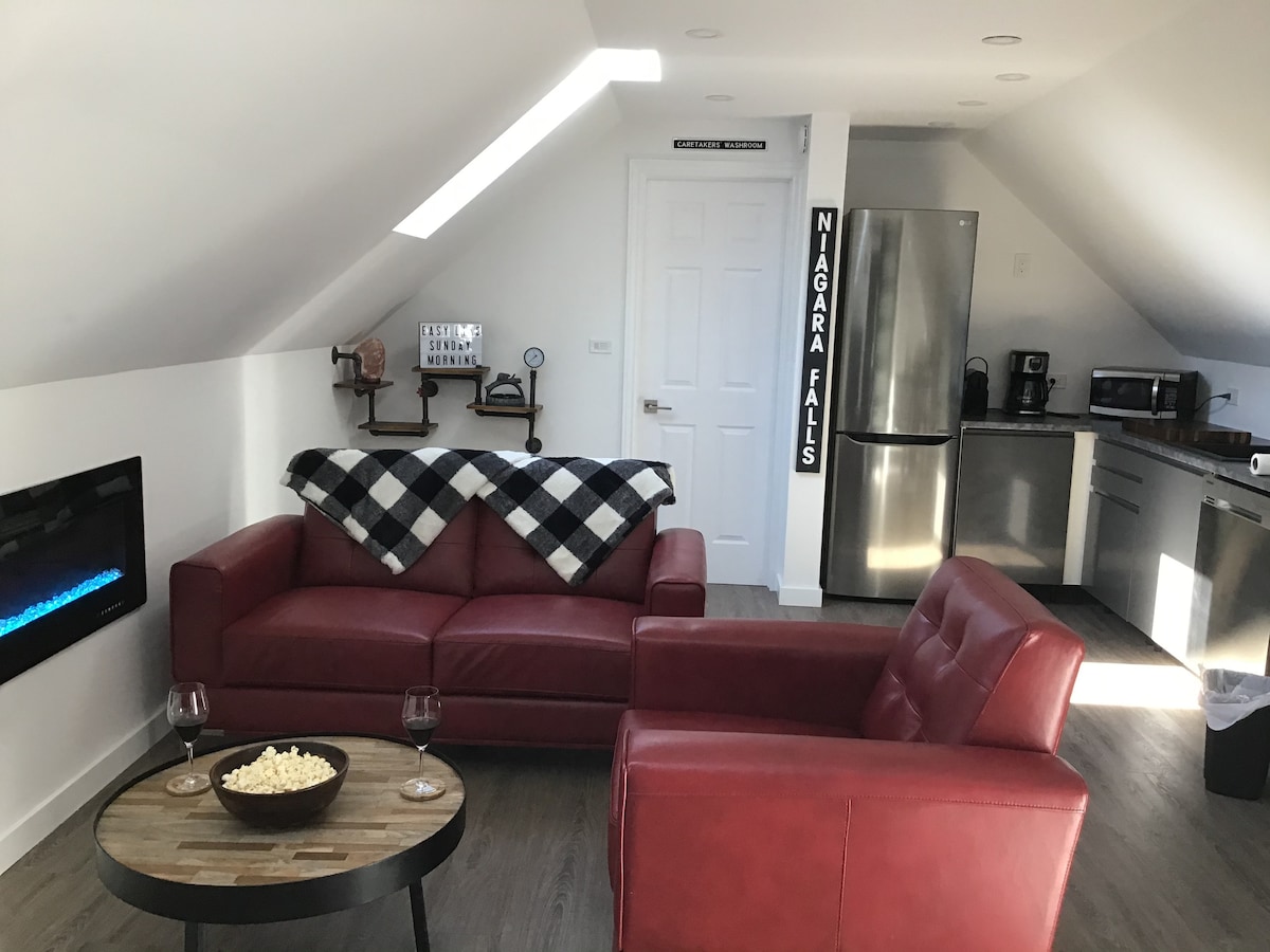 ✨Private 1BR in Niagara Falls, walkable to the Falls and attractions, with free parking.✨ Relax in this bright, comfortable 2nd-floor retreat—perfect for couples and solo travellers exploring Niagara Falls or local wineries. Enjoy a queen bed, full kitchen, fast WiFi, 55” UHD TV (Netflix/Disney+/Crave), electric fireplace, workspace, laundry, free driveway parking. Tucked in a, safe neighbourhood just mins from Clifton Hill and the Falls. ideal balance of convenience and peaceful comfort.