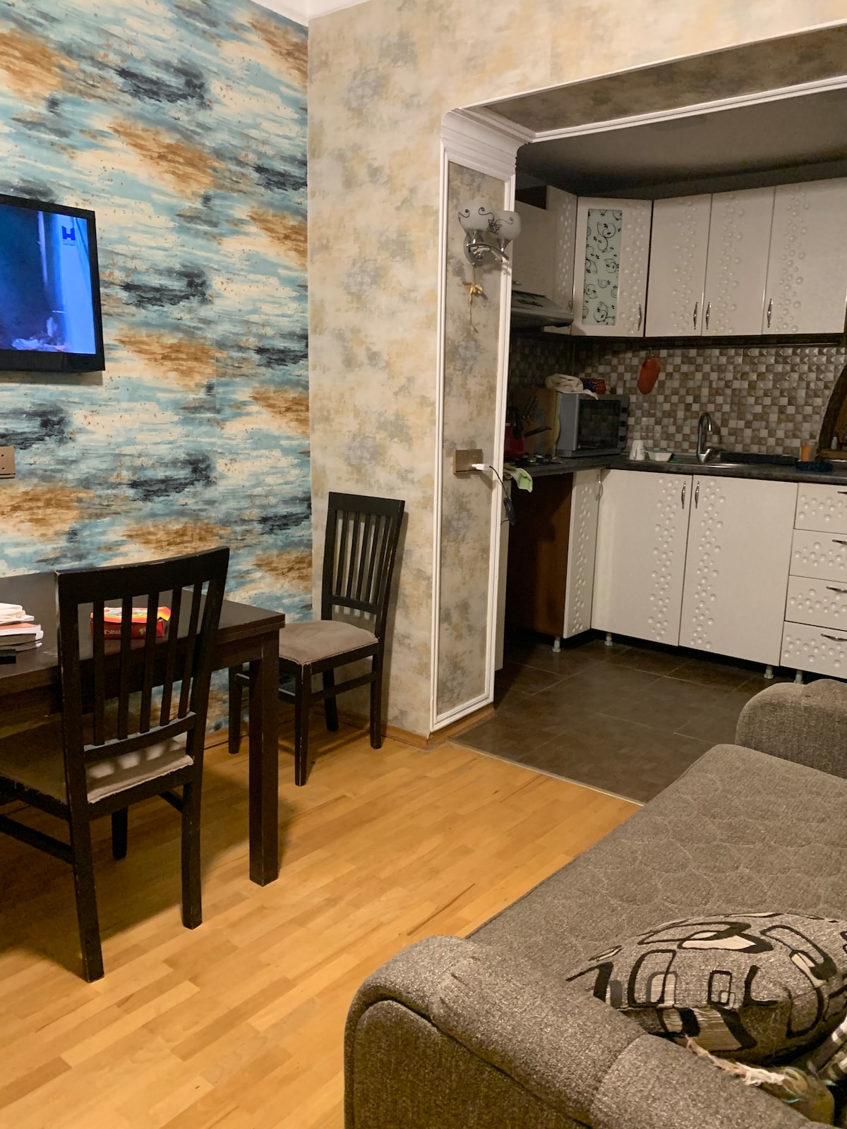 В самом центре Баку , Второй этаж (2/2) , высокие потолки 4 метра, около знаменитого заведения : Crazzy Bear а также рядом находится метростанция Сахиль и знаменитая Площадь Фонтанов и Бульвар , в каждой комнате есть кондиционер, Wifi 4g и 5g , Smart Tv и 200 Тв каналов , удобная кровать King size и дубовая мебель, в гостевой зоне диван перед телевизором , кухня студия со всеми условиями : холодильник, микроволновка, газ, в квартире есть комби отопление , есть отдельная комната для глажки