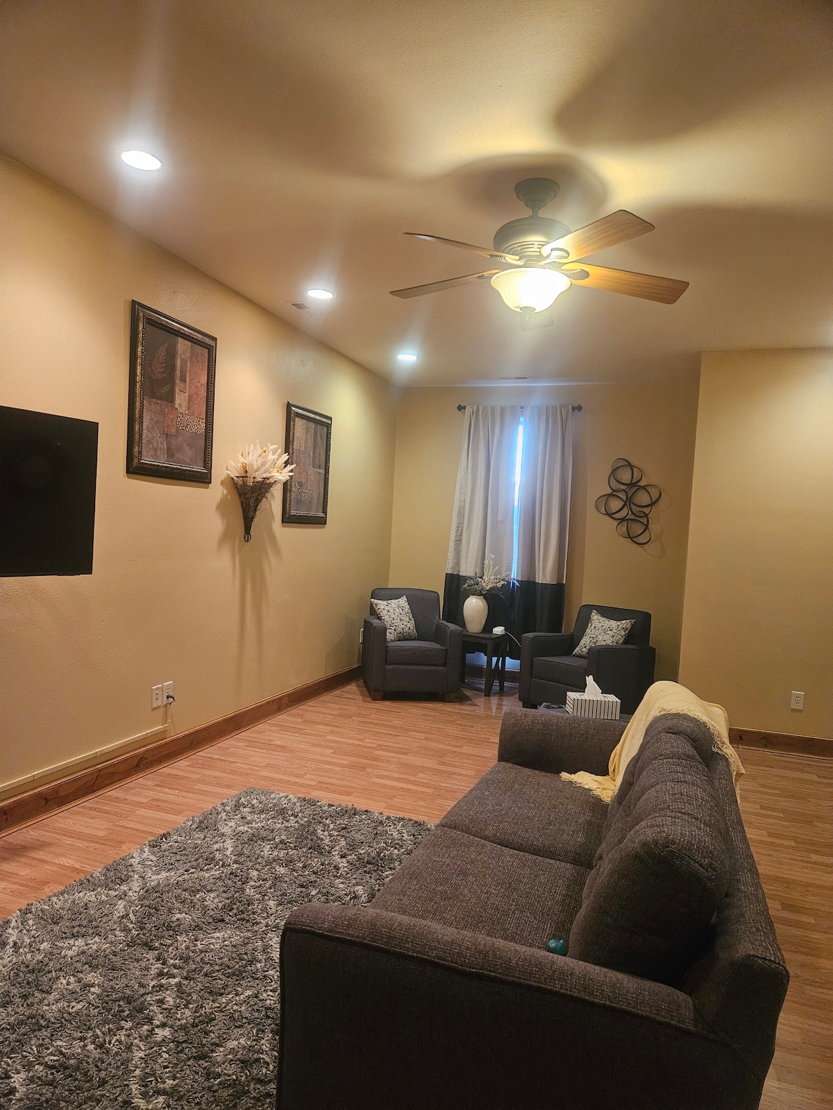 3BR 1Bath 1/2 House w/Living RM Full Kitchen 12 Miles from ND Sleeps 5 1st BR: Queen Bed, HD SMART TV, Phone, clock, dresser, closet, Alarm Clock, Ceiling Fan 2nd BR - FULL/Double, HD Local TV, Phone, clock, dresser, closet, Alarm Clock, Ceiling Fan 3rd BR - FULL/Double Bed, HD Local TV, clock, desk, closets, Alarm Clock Full Bath - With Tub/Shower combo Full Kitchen - Gas Range, Microwave, Ice Machine, Full refrigerator, Dining Area No Laundry No Smoking inside 420 Friendly. Thanks 4 Looking!