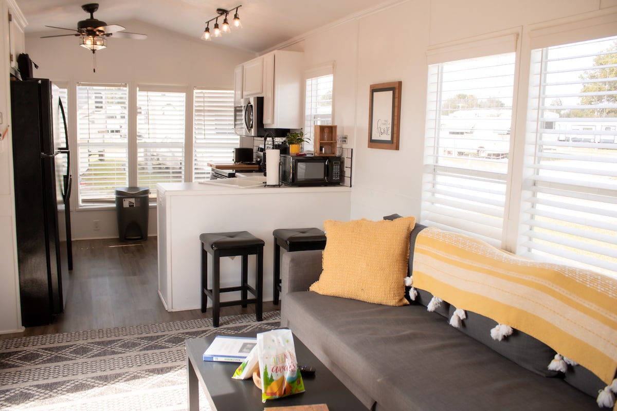 Relax in a fully loaded RV with all the essentials for a peaceful getaway. Located in a quiet RV park near a scenic pond and wooded walking trails, this stay offers a comfortable bed, full kitchen, workspace, private bathroom with shower, and a smart TV. Whether you’re traveling for work or leisure, you’ll enjoy the natural setting, picnic areas, and nearby playground. Perfect for weekend stays, solo trips, or small families. Full hookups and basic Wi-Fi included.
