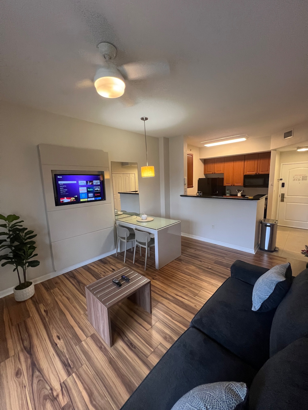 Welcome to our stylish oasis in Kissimmee, which seamlessly blends sophistication with a laid-back vibe. Your stay begins in a professionally cleaned apartment for your full enjoyment. Discover resort-style amenities – a sparkling pool, a fitness center, and hammocks, offering the luxuries of a five-star retreat. Conveniently located with in walking distance of theme parks, restaurants, and shopping. Book now. We can't wait to host you in our little slice of paradise!