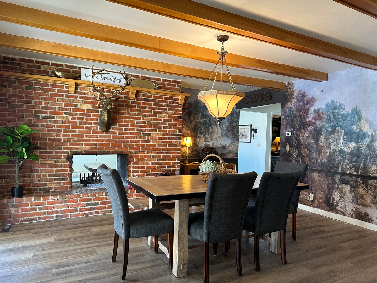 Newly remodeled property for groups, family reunions, retreats or small weddings. Located on the Snake River's edge, with private river access. 5 BR home sleeps 16, plus pads, cots and couches for additional guests. Gorgeous deck to enjoy view. Commercial double ovens and fridges, oversized island and dining area make hosting your crowd easy. High speed WiFi for work or play.Three family rooms for games or movies. 2nd full kitchen downstairs. Landscape in progress.