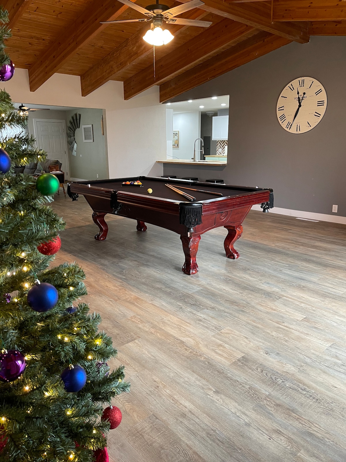 Newly remodeled property for groups, family reunions, retreats or small weddings. Located on the Snake River's edge, with private river access. 5 BR home sleeps 16, plus pads, cots and couches for additional guests. Gorgeous deck to enjoy view. Commercial double ovens and fridges, oversized island and dining area make hosting your crowd easy. High speed WiFi for work or play.Three family rooms for games or movies. 2nd full kitchen downstairs. Landscape in progress.