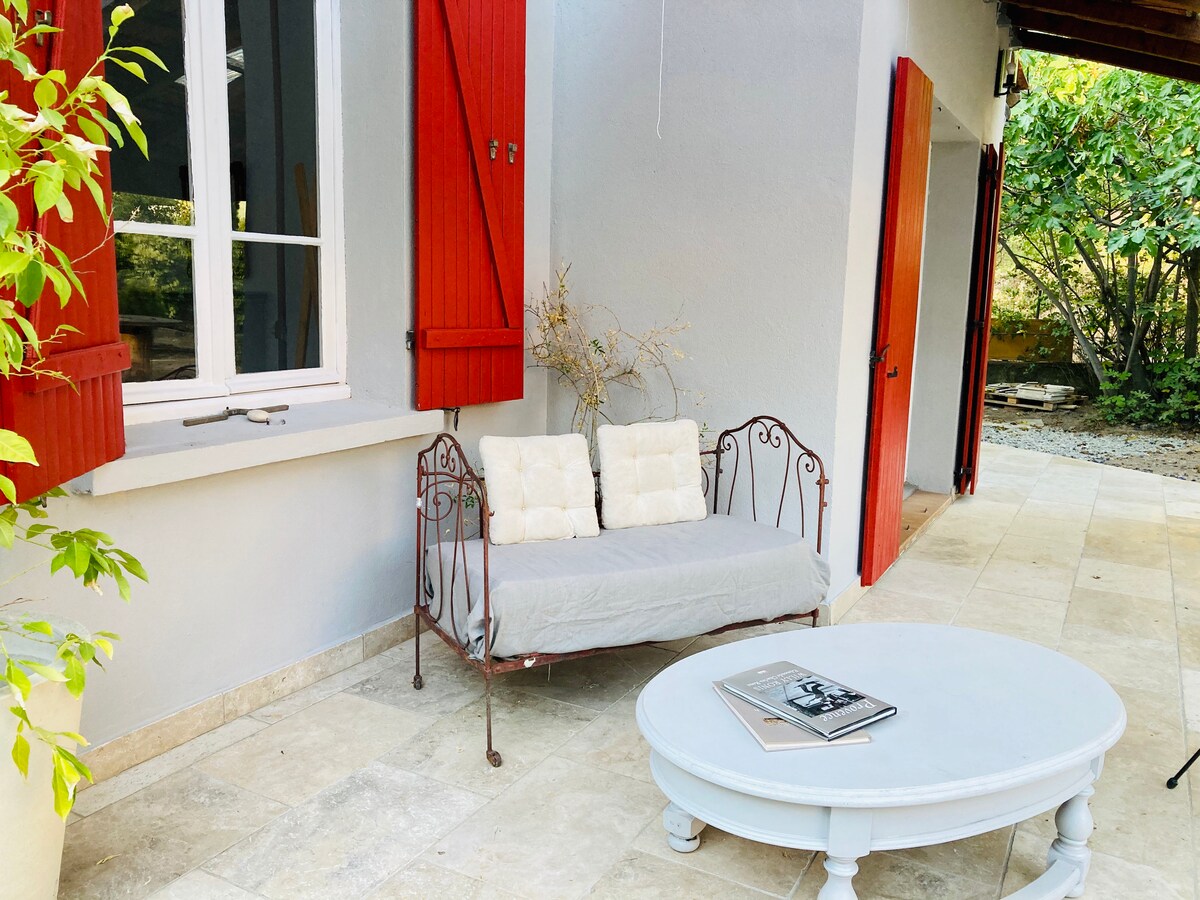 We are delighted to welcome you to our 18th century country house in local stone. We have restored it with passion and we hope that it will make you spend a very nice stay. It's an independent house from our main house.You will have a beautiful terrace, a large air-conditioned bedroom with a 160cm bed, a reading corner, a kitchen equipped with a fridge and a microwave and a small dining area. The small retro bathroom has a walk-in shower.