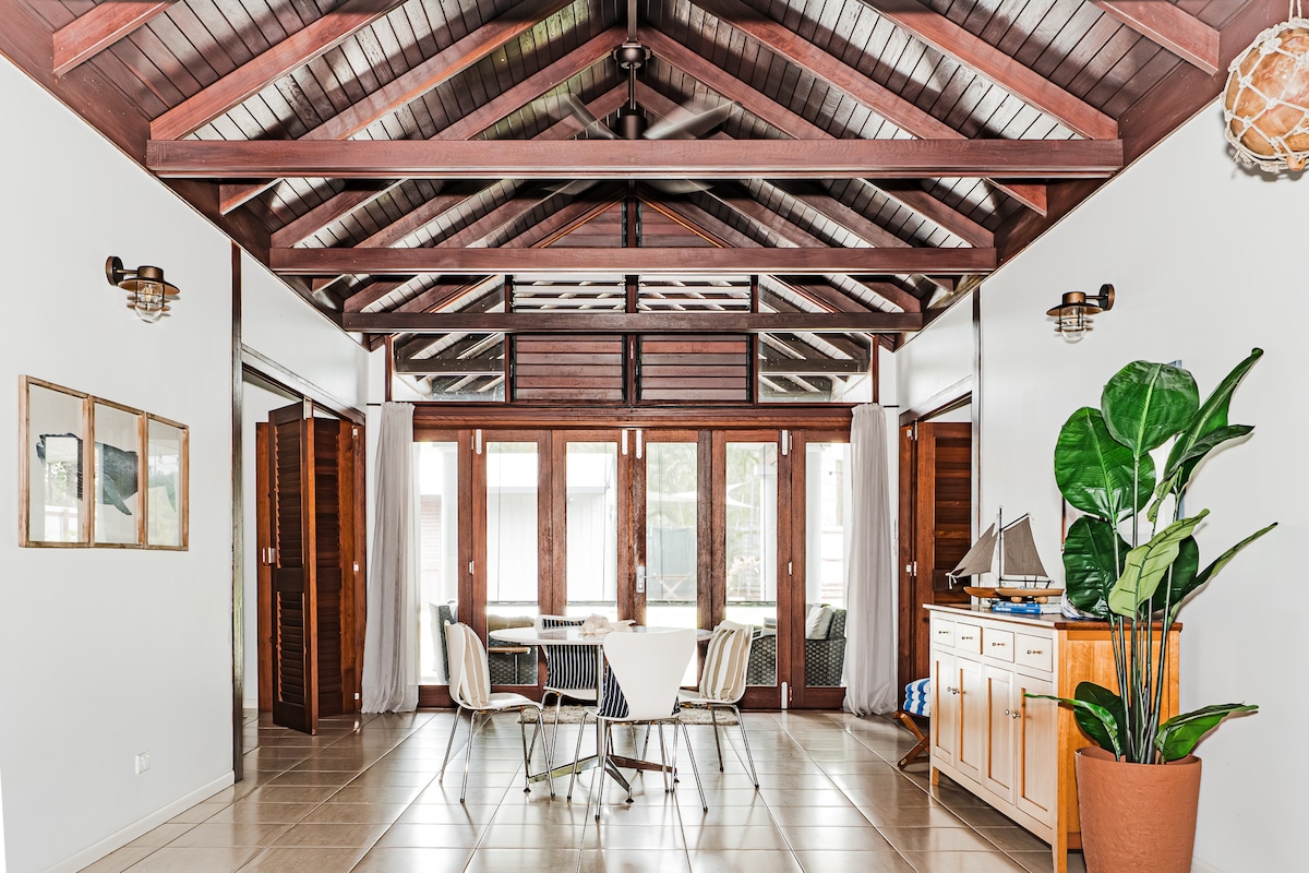 This rare find is a fully self-contained beach shack with heaps of character on a large private block. Just a 100 meter stroll to beautiful South Mission Beach and close access to coastal walking tracks and rainforest trails. Our simple, comfy retro shack has everything you need for a chilled out beachside stay. You can even bring your boat, there's plenty of room for a boat trailer on our block and river and beach boat ramps close by.