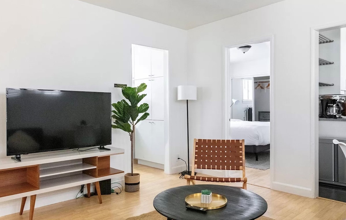 从时尚的1卧公寓欣赏洛杉矶市中心的天际线景观