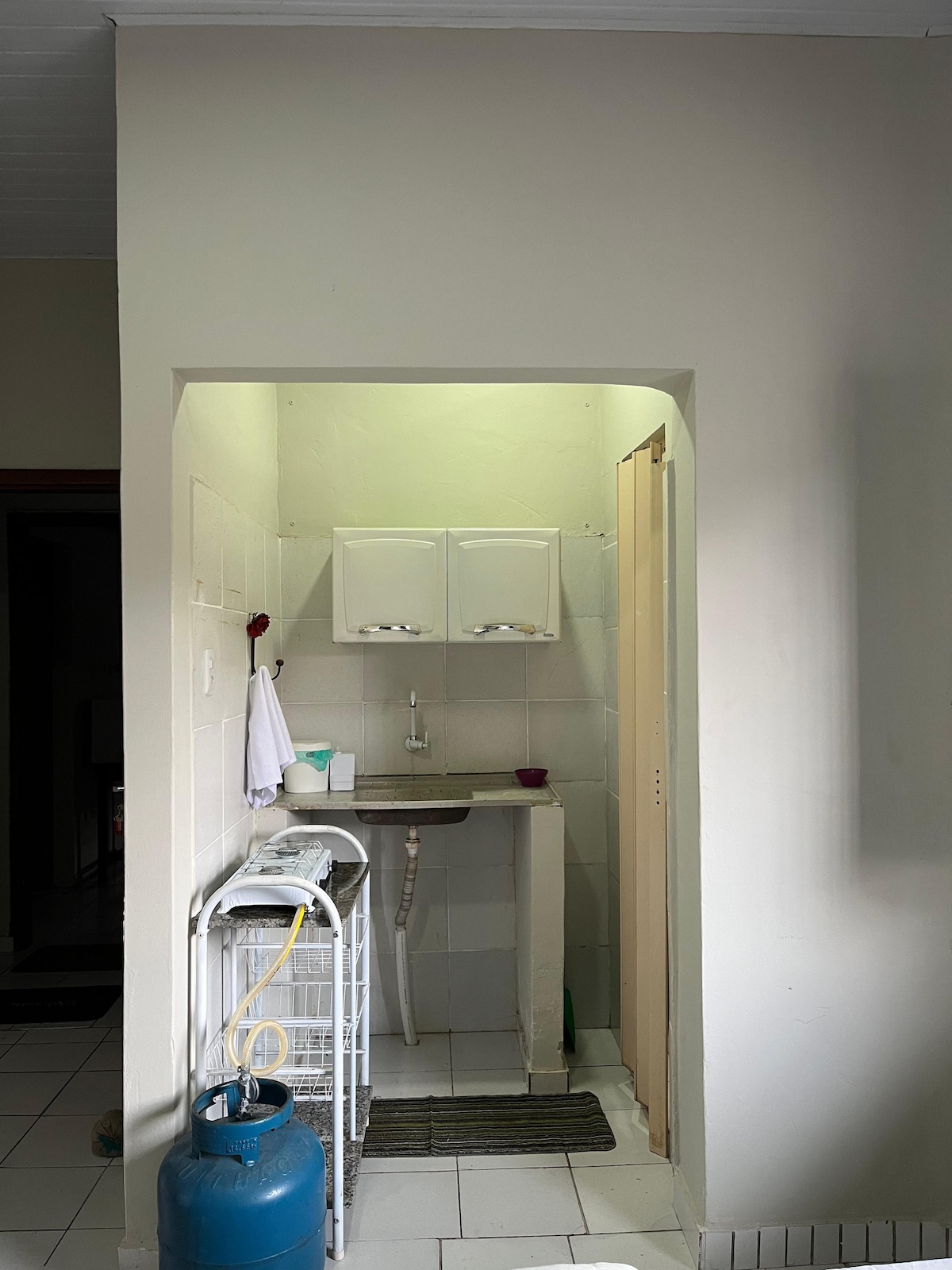 Esta acomodação tem tudo que você precisa para curta ou longa temporada. Quarto amplo e confortável, cama nova, colchão firme, Ar condicionado com manutenção em dia, banheiro amplo, cozinha completa com geladeira, pia, fogão e utensílios. A entrada da acomodação é totalmente independente com acesso logo de frente na Rua Raquel Lemos bairro caiçara.