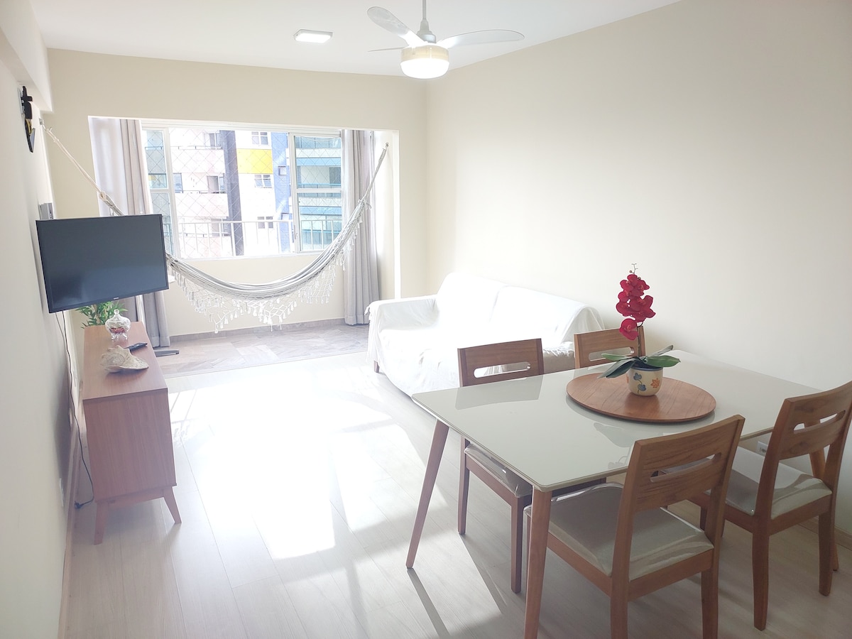 Aconchegante apartamento inteiramente montado pra você bem no Centro de Guarapari. A 100m da praia e ainda menos do Beco da Fome. Possui ar condicionado, Wi-Fi, Netflix, portaria 24h e vaga grátis (rua) ou garagem (paga). Cozy apartment entirely set for you right in the Center of Guarapari. A 2-minute walk to the sand and even less than that to Beco da Fome - Guarapari's finest street for entertainment, food and bar. There's air conditioning, Wi-Fi, Netflix and an optional garage parking spot.