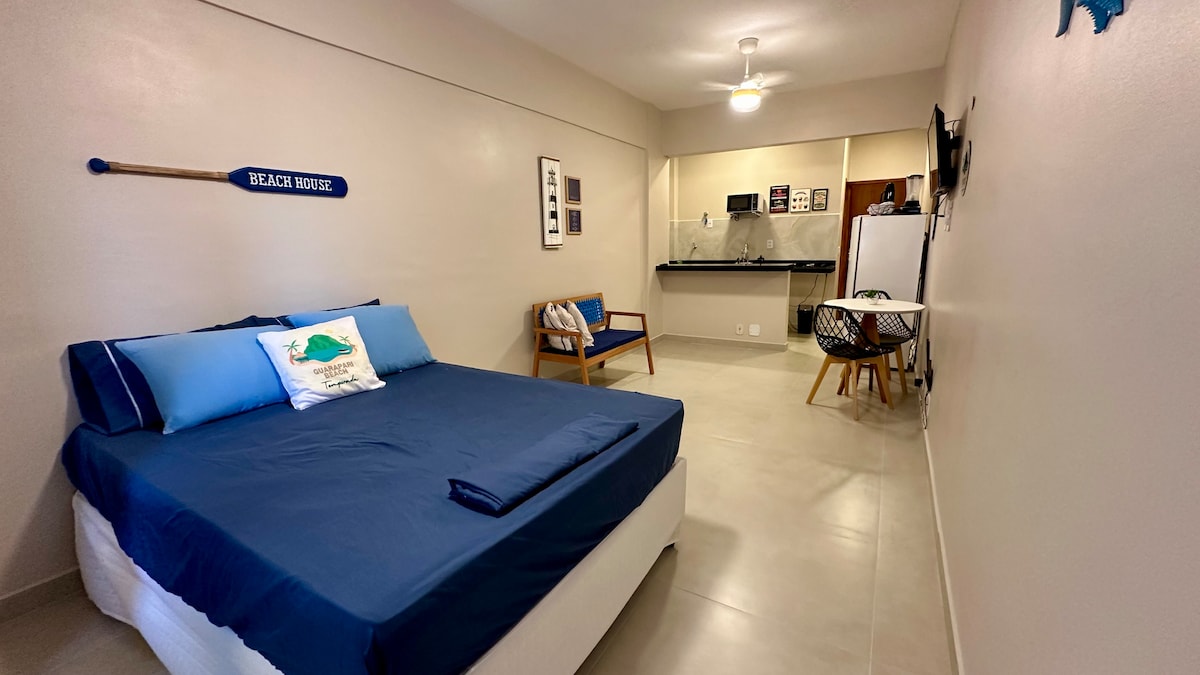 Nosso estúdio oferece uma localização excelente no Centro de Guarapari, a poucos passos do Cais das Escunas e perto das principais praias da cidade (Castanheiras, Areia Preta, Namorados). O equilíbrio ideal entre sossego e conveniência: um estúdio equipado e acolhedor, próximo de tudo que a cidade tem de melhor. 📍 Distâncias das principais praias: Praia dos Namorados – 500m Praia das Castanheiras – 700m Praia da Areia Preta – 900m Praia do Morro – 1,4 km