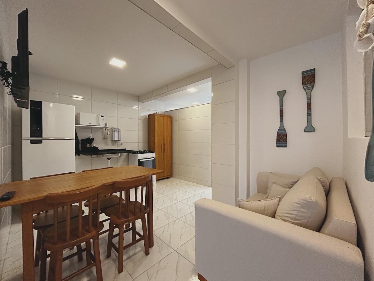 O Loft Mar Mediterrâneo acomoda até 4 pessoas e está a 700m da Praia do Morro. Possui 2 banheiros (1 suíte), sala espaçosa com sofá-cama, cozinha equipada com fogão, AirFryer, geladeira de 375L e todos os itens novos, além de uma área externa com churrasqueira. Conta com garagem privativa (carros compactos de até 4,45mts) e lavanderia, é ideal para quem busca conforto e praticidade. Próximo a restaurantes, farmácias e mercados, sua localização é perfeita para explorar Guarapari.