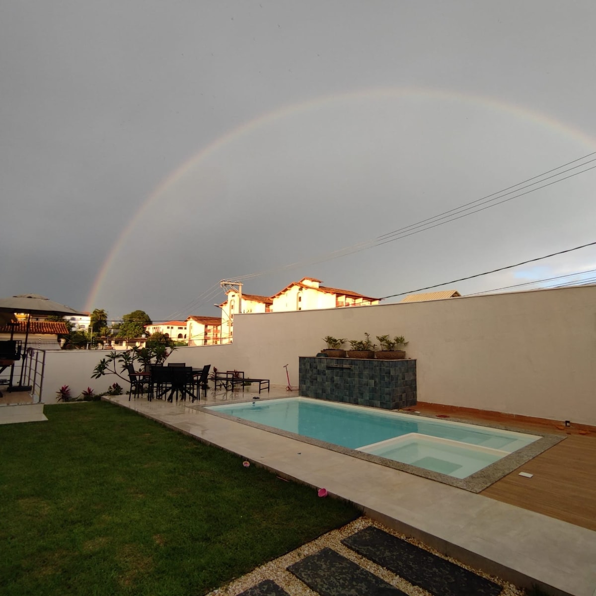 Casa com piscina exte. e banheira de hidromassagem 2 pessoas aquecida suite * 3 vagas garagem * area churrasco * suite c. queen * quarto solteiro + cama auxiliar e 3 colchonetes * sala sofá retratil 2,5 mt * cozinha ( fogao, geladeira, micrrondas) * câmeras ext. * liquidificador, misteira, ferro, arfriry e secador de cabelo. * ar condi. e vent. nos quartos * roupas de cama completa * câmeras externas, sendo 1 vista da para porta e vidro, a noite fechar cortina para total privacidade.
