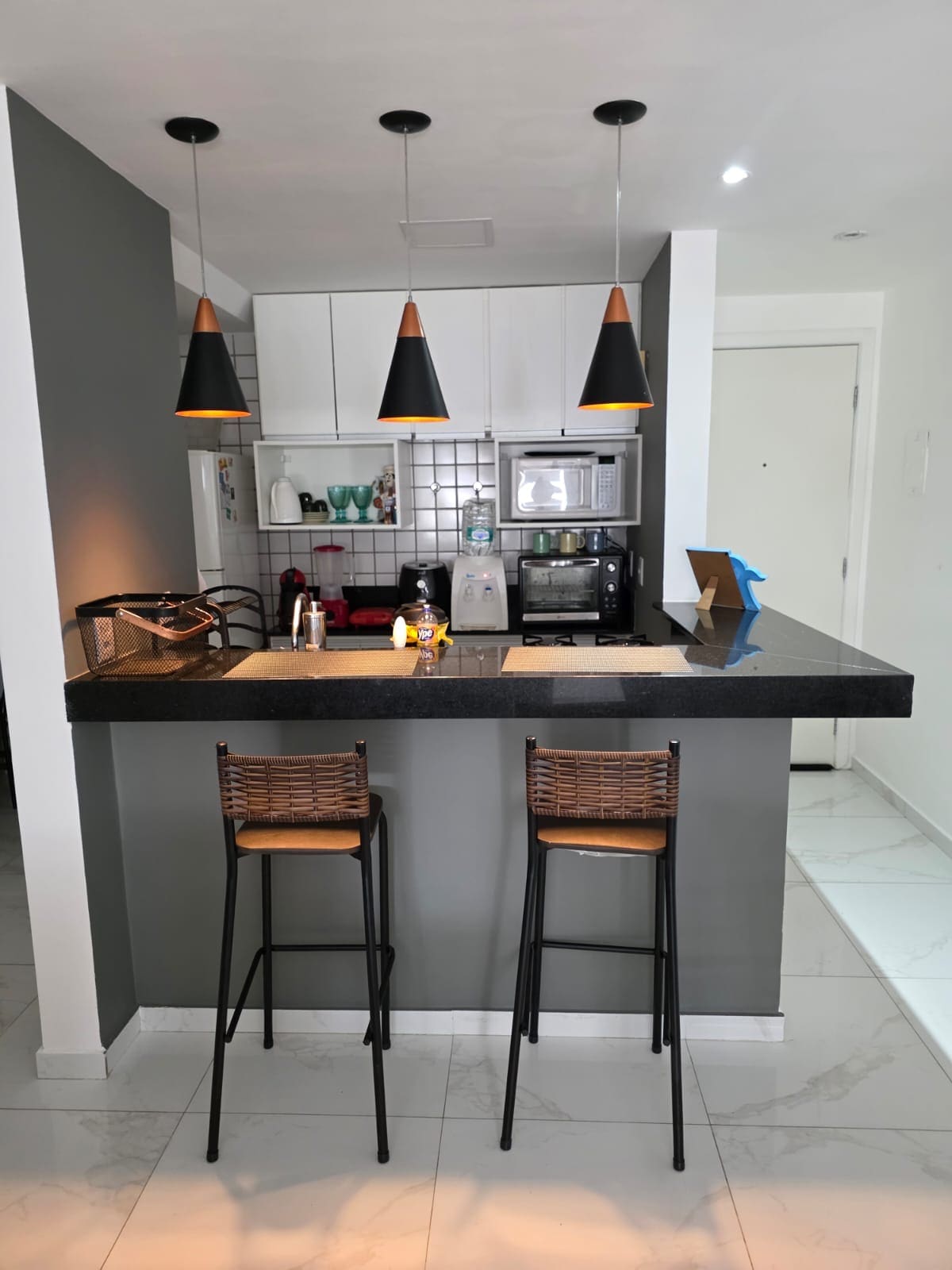 Loft de 02 quartos, com toda a estrutura de hotel, piscina, salão de festas, churrasqueira, quartos com ar condicionado, cozinha com fogão, geladeira, máquina de café, filtro de agua, quarto com cama Queen e o outro com cama de solteiro. Wi-Fi particular de 360 megas Sala com Tv, Sofa, e toda comodidade que você merece. No centro de guarapari. Ao lado tem padaria, restaurantes, a poucos passos da praia.