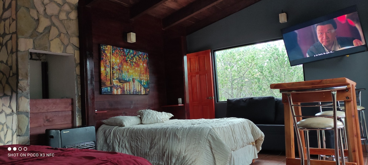 Relájate en esta escapada única y tranquila. especial para un descanso en un área limpia, confortable e independiente; con todos los servicios: clima, pantalla de 40 " con Netflix, YouTube, rocku, agua caliente y fría, área para trabajar, cama matrimonial, frigobar, microondas.