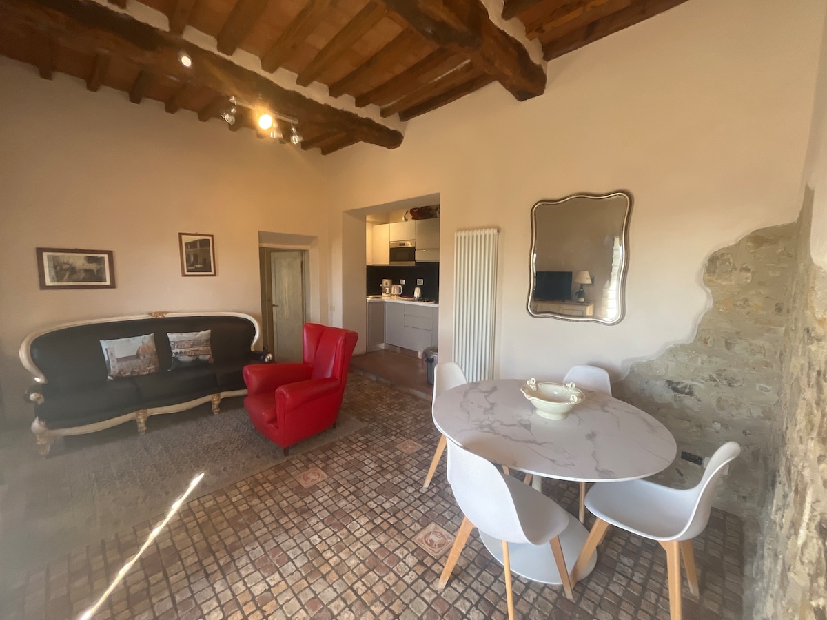 Piccolo e confortevole appartamento per 2 persone arredato in stile toscano e con travi a vista,immerso tra le dolci colline della campagna toscana. A disposizione degli ospiti spazio esterno con tavolo,piscina condivisa,forno a legna e barbecue,piccola lavanderia,wi-fi. L'appartamento è stato ricavato da una graziosa casa colonica in pietra del 1800 recentemente ristrutturata secondo la tradizione toscana e suddivisa in tre comodi appartamenti