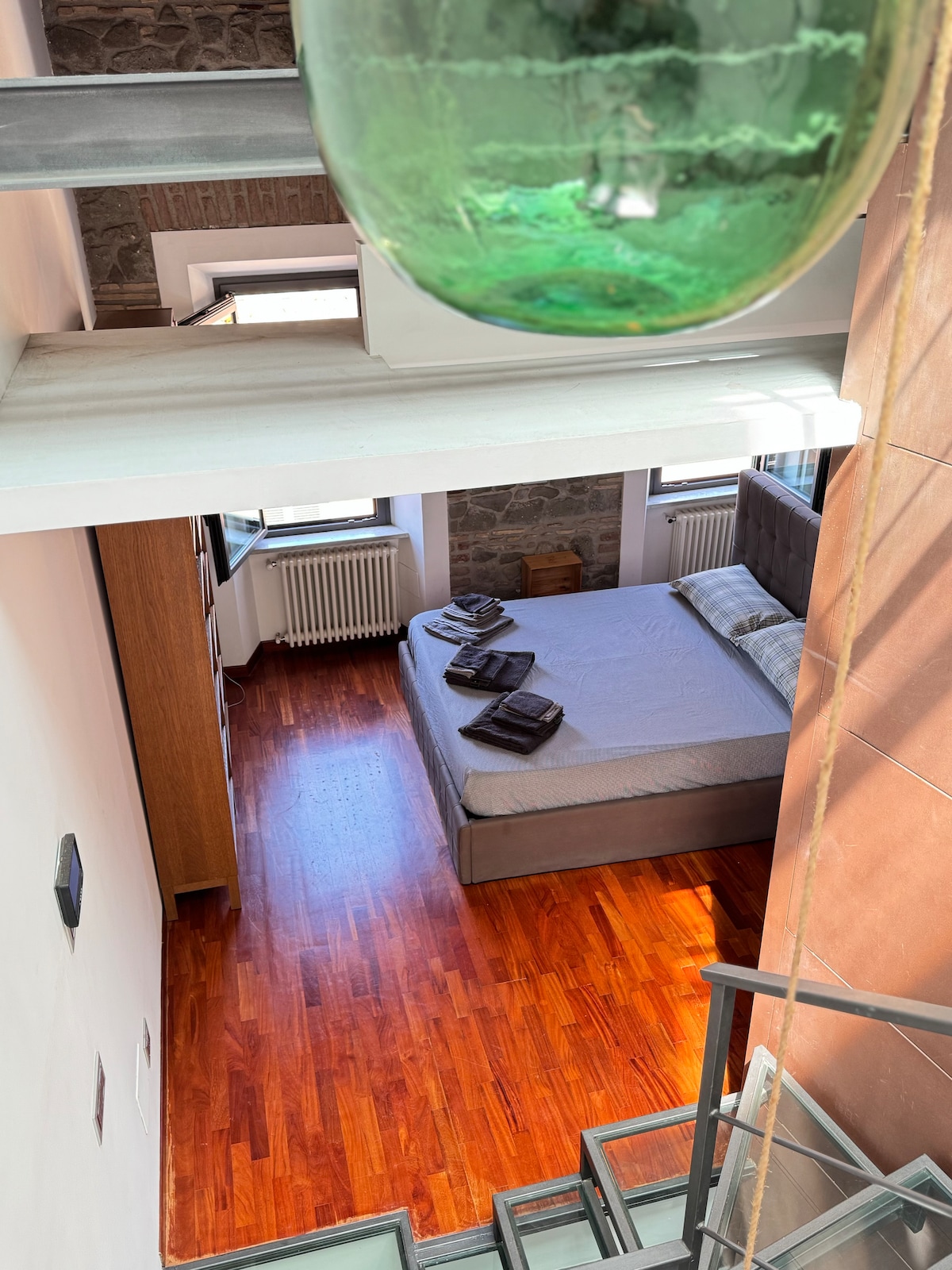 the building, housing this unique loft for 2 persons, dates back to 1926 and was rebuilt in 2009, the apartment in 2019. Refurbished completely with all modern comfort. Bright & warm in winter, cool in summer. PLEASE NOTE this property is located 8 km from the Colosseum, so it is not in the city-centre. It is anyhow easily reachable by bus and underground. You'll find: hairdryer, washer, dishwasher, wi-fi, micro-wave, air-conditioning, private secured car-parking for 1 car