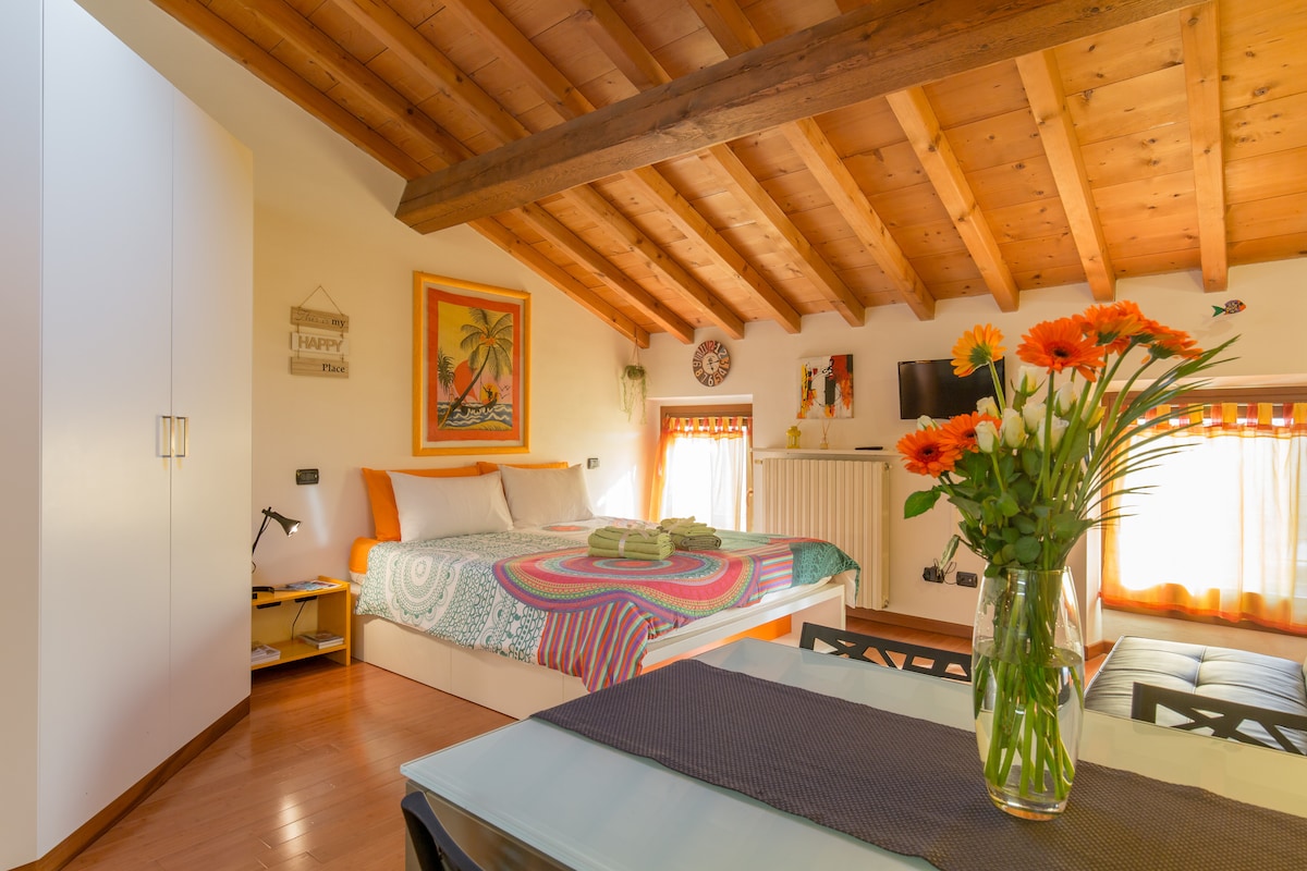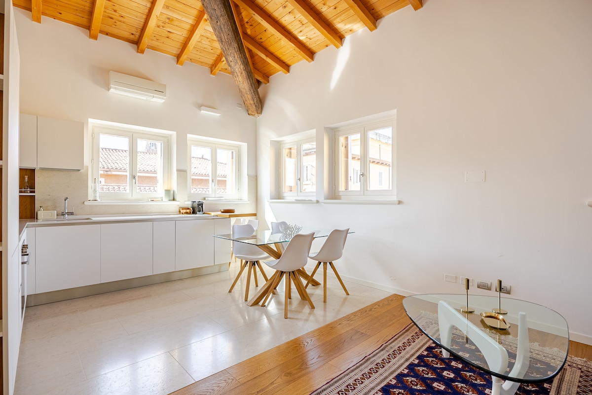 Your stay is located in a charming and reserved medieval 1200 palace, a 2-minute walk from Piazza delle Erbe and a few minutes walk from the Duomo and the Arena of Verona, which is in the heart of the historic city center. The house located on the top floor (with elevator), will allow you to enjoy a breathtaking view and immerse yourself into the fairytale charm of the city. License number: CIR: 023091-LOC-04207