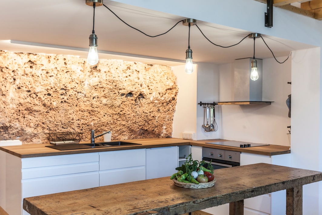 A escasos metros de Portopetro se ubica esta maravillosa joya con historia. En origen, era el taller de un carpintero dedicado a la restauración de embarcaciones de madera. La casa está construida a partir de la roca originaria que forma parte del corazón de este espacio. Así, roca, madera y hierro conforman la estética y la estructura de la casa, dando la sensación de estar en un barco que parece albergar una cueva en su interior.