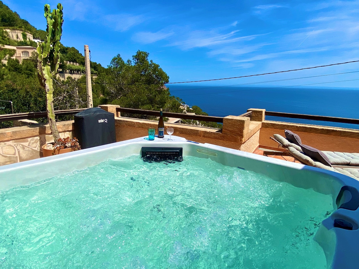 Es Mirador de Vernissa。按摩浴缸、桑拿房和泳池