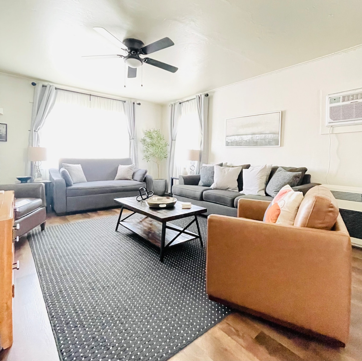 The Blue Haven, located in the friendly Gateway Community is the perfect place to rejuvenate and unwind. Kick back and relax in this calm, stylish space with all new amenities. The kitchen is fully equipped and prepped to make any meal. The firm queen bed and firm pull-out sofa are extremely comfortable with cooling mattress toppers and pillowcase covers. It is a 4-minute drive from downtown, a quarter mile from the headwaters, and .2 miles walk to the Peace Garden.