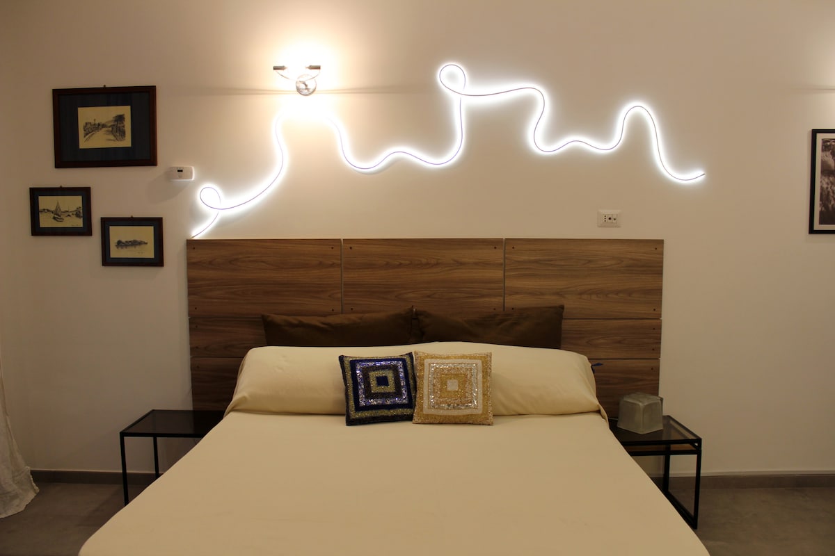 Cozy suite composed of masterbedroom and living room with sofa, designed to accommodate couple or single travelers. Located on the second floor of an elegant building in the city center it is within easy reach of the major tourist sites. Pompeii, Herculaneum, Naples, Sorrento, Capri and the Amalfi Coast can be reached by the Circumvesuviana train (300mt station) or by sea (800mt port).