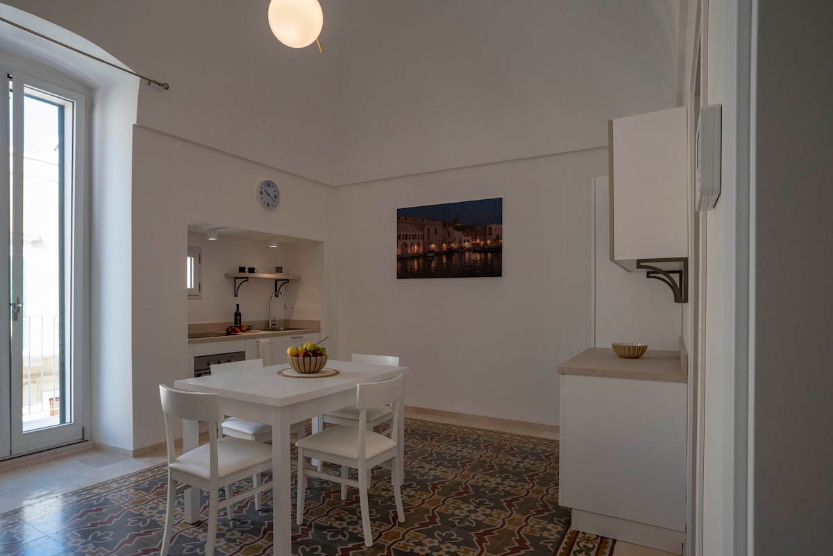 Romantic and typical apartment for three people in the heart of centre of Monopoli, in Apulia. The property has been restored with really high standards and furnished with tailor made details and interiors; the accomodation is located in an area well serviced by public transport and offers the possibility of free car parks in a radius of 100 mt. You can also find numerous prestigious restaurants in the neighbourhood.