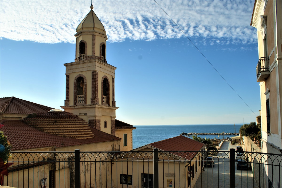Agropoli, the gateway to Cilento, independent entrance apartment, fully equipped kitchen, 60 meters from the sea, in the green, villa sea view in a sought-after area, 300 meters from the historical center, via Armando Diaz n. 63, 1 double bedroom, living room with kitchen and double sofa bed, bathroom, washing machine, TV, fiber WiFi 317 Mbps. Nearby are 2 beaches (60 or 150 meters), all shops (300m), and the ancient village with the castle, the center of cultural and artistic activities (400m)