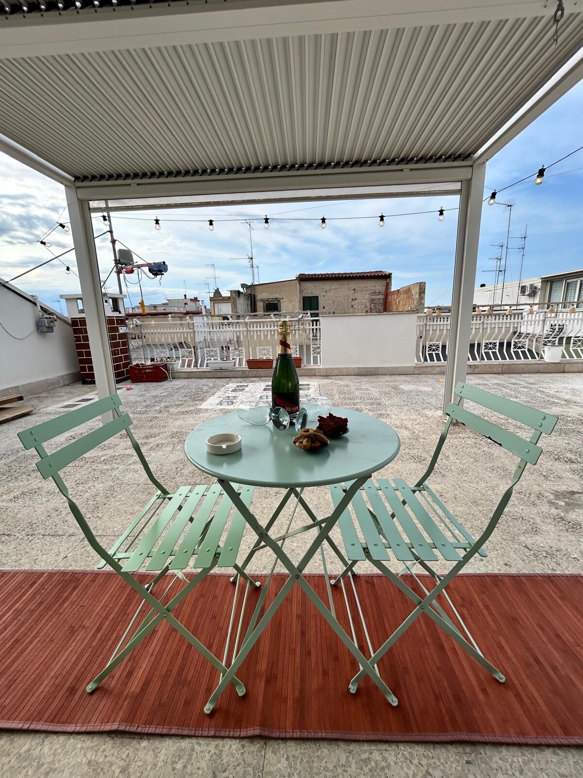 La casa si trova in una piazza vicina al centro storico, al terzo ed ultimo piano di un palazzo del '600, una volta teatro. Ci sono due terrazze: una a livello da 40mq con annessa lavanderia + un’altra di 120 mq con vista mare. In tutta la casa c'è un parquet in legno. Ci sono 2 condizionatori, 2 smart-tv, due bagni ed un bagno turco con cromoterapia. La casa, arredata con mobili antichi, è accogliente, molto luminosa e lontana da rumori. Vedi lo spot della Puglia: https://youtu.be/nSFyATE0pTc