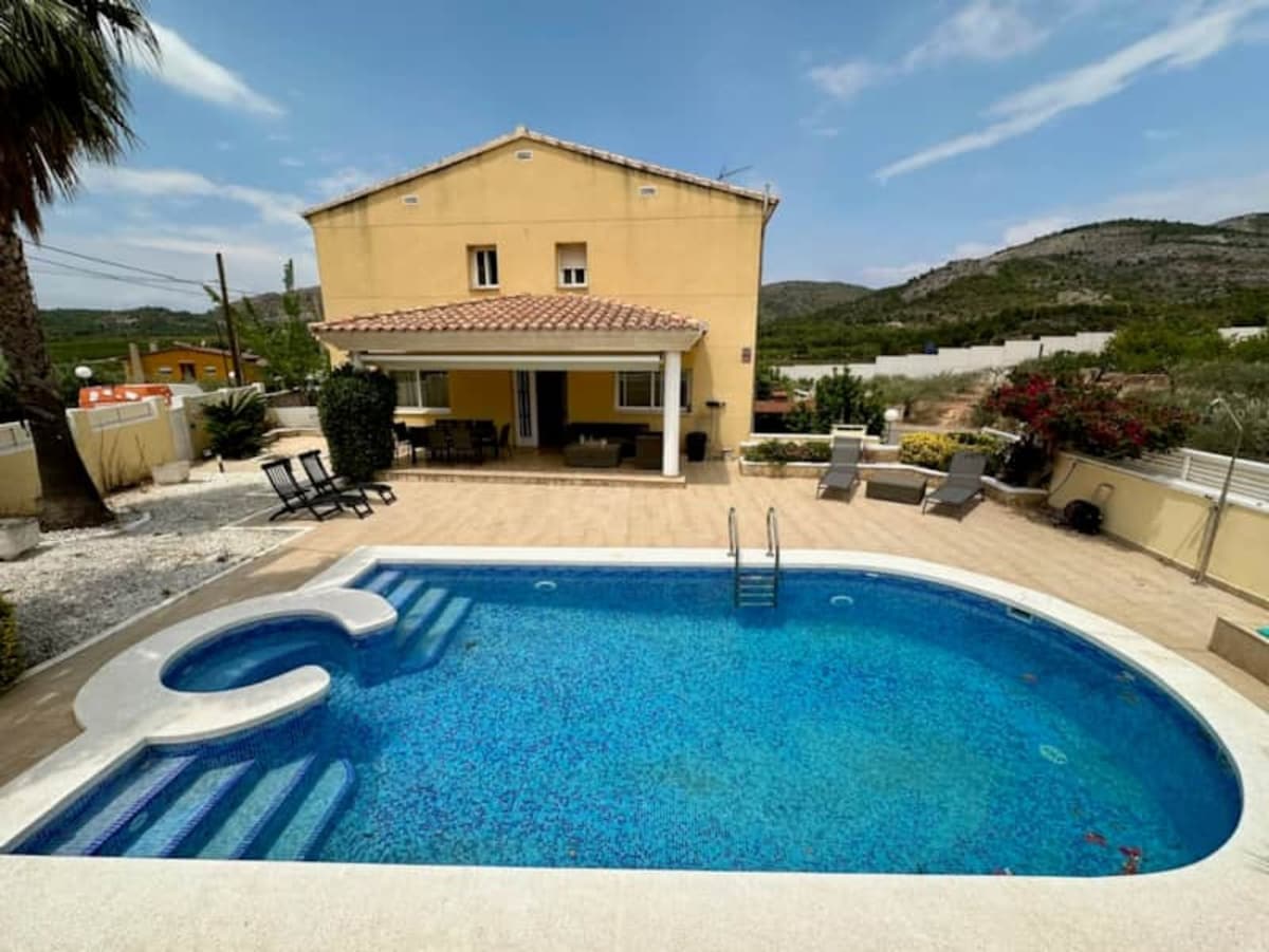 ☀️🏊‍♂️🏄‍♀️🪸Lleva a la familia o a tus amigos a este fantástico alojamiento,práctico, bonito,recién decorado y con nueva gestión. Chalet INDIVIDUAL,de dos plantas,vallado,con DOS TERRAZAS amuebladas,cuidado jardín privado de 300 m2, WIFI, PORCHE con BARBACOA,COMEDOR-SALÓN Y CHILL OUT. Situado en una urbanización tranquila, 2PLAZAS APARCAMIENTO, JACUZZI,parque INFANTIL,petanca, estanque y 4000m2 de césped y jardines alrededor de la GRAN PISCINA. SÁBANAS,TOALLAS, GEL Y CHAMPÚ incluídos 1 BICI