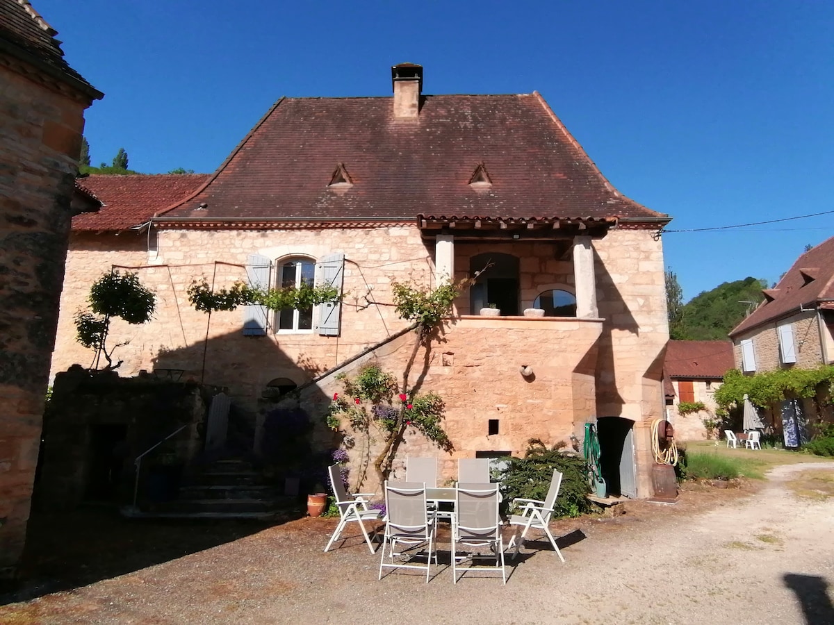 Avec une vue à couper le souffle ce logement paisible offre un séjour détente au cœur du Périgord noir proche de Sarlat. Vous pourrez aller vous baigner à pieds, faire du canoë, une randonnée au bord du Céou ou de la Dordogne ! Ou encore visiter les châteaux de Castelnaud, Beynac ou Milandes; ou les grottes Lascaux, Maxange; Jardins Marqueyssac, Eyrignac… Vous pourrez admirer les montgolfières, canoës et gabares du balcon. Courses sur place : Leclerc, boucherie, boulangerie et recharge Mobive