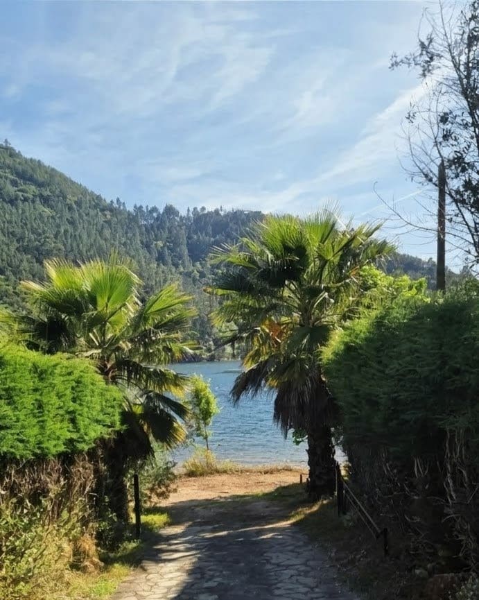 House with 160sqm surrounded by nature, right in front of the water, with a magical 1500sqm garden and direct view of the lake. Just a few steps from the river beach where you can swim. Offers indoor and outdoor eating and leisure areas, fireplace, barbecue and hot-tub. Only 90 min. from Lisbon. Perfect to relax and enjoy nature, the lake, and good times with family and friends. Wake up to the sound of birds, enjoy meals with a view of the lake, and experience magical sunsets in the garden.