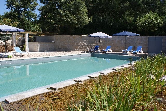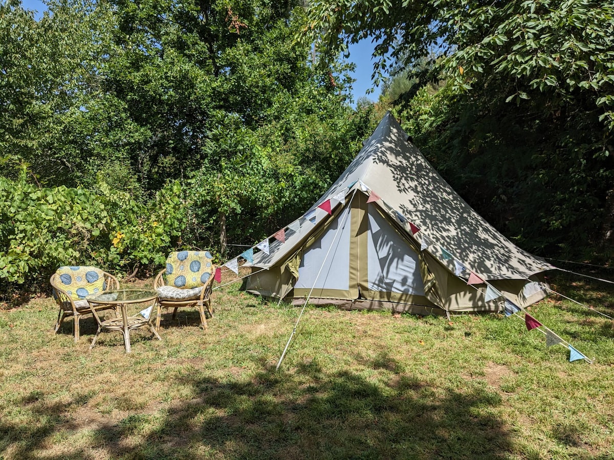 A beautiful bell tent with warm duvets & comfy bedding, sleep beneath the stars in luxury. You can make use of both the house & outdoor kitchen, lounge in shady spots and take a cool dip in the plunge pool. The bathroom it's in the house and is shared. There is a kitchen garden & many fruit trees to pick and harvest from, a table tennis table, bikes and a kayak for your use. Breakfast, lunch & dinner available on request...& great coffee. This is a Glamping site with 4 tents + 2 rooms.