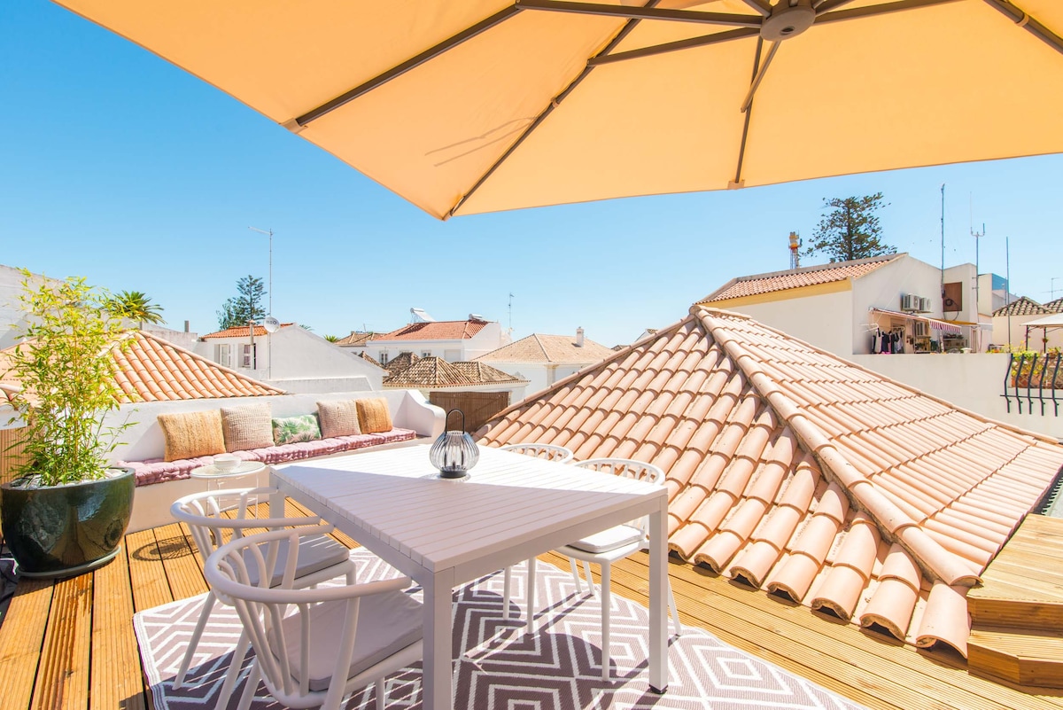 Apartamento duplex, com 3 terraços, em pleno centro de Tavira, totalmente equipado, perfeito para confortáveis estadias curtas e longas. Ideal para casais! Perto de todas as principais atrações da cidade. A 5 minutos a pé do cais de embarque para a Ilha de Tavira. Duplex Apartment, with 3 terraces, in the center of Tavira, fully equipped, perfect for comfortable short and long-term stays. Ideal for couples! Near Tavira's main attractions. Only 5 minutes walk from Tavira Island ferry pier.