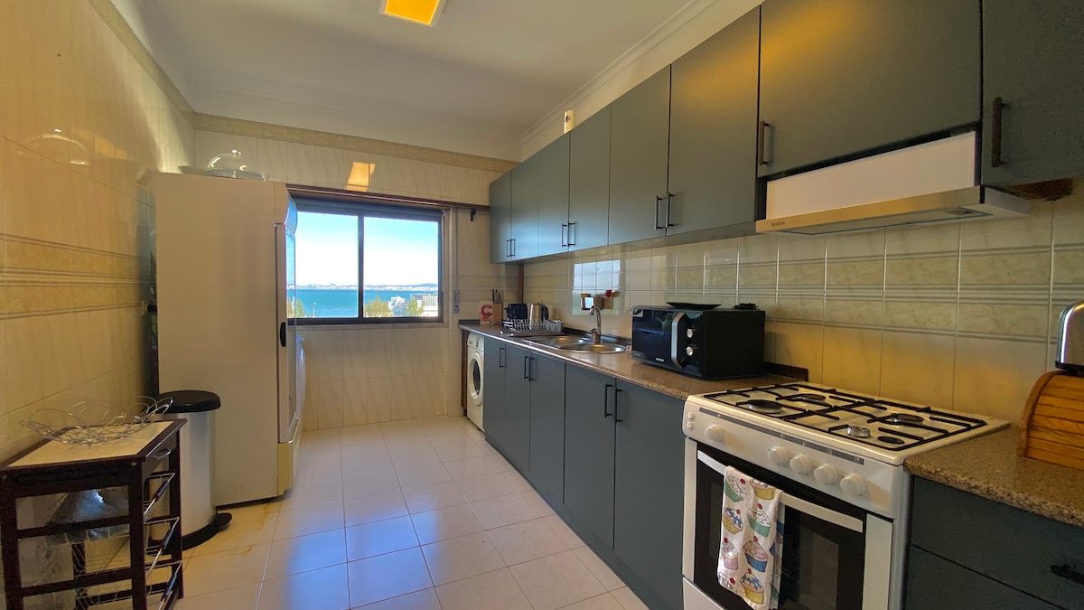 Spectacularly located, modern flat, offering 180º unobstructed panoramic views of the Atlantic ocean. The spacious open floor plan and double balcony enable a wonderful holidaying experience. The beach is accessible by foot (5 minutes). Free parking. Our associate in Sesimbra will meet you at the building main entrance to let you in and hand over the keys. My father Jose, a co-host, will assist you via email/mobile/WhatsApp - his mobile number is printed on the reservation pdf. 28513/AL