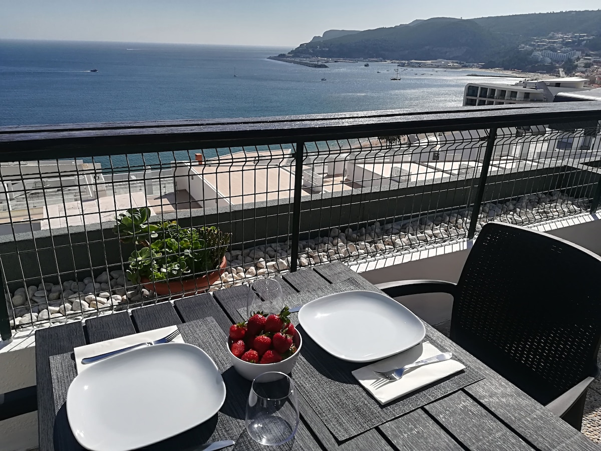 Breathtaking view in Sesimbra! Overlooking the cliff and the gorgeous California beach, the building has a private beach access and is within a 5 to 10 minute walk into the restaurants / market / shops area in the center of town. A 15 minute drive takes you to the Arrábida Natural Park, a mountain range with incomparable beauty sliding onto white sand and turquoise water beaches, considered one of the natural wonders of Portugal. In 45 minutes you reach Lisbon as well as the airport. .