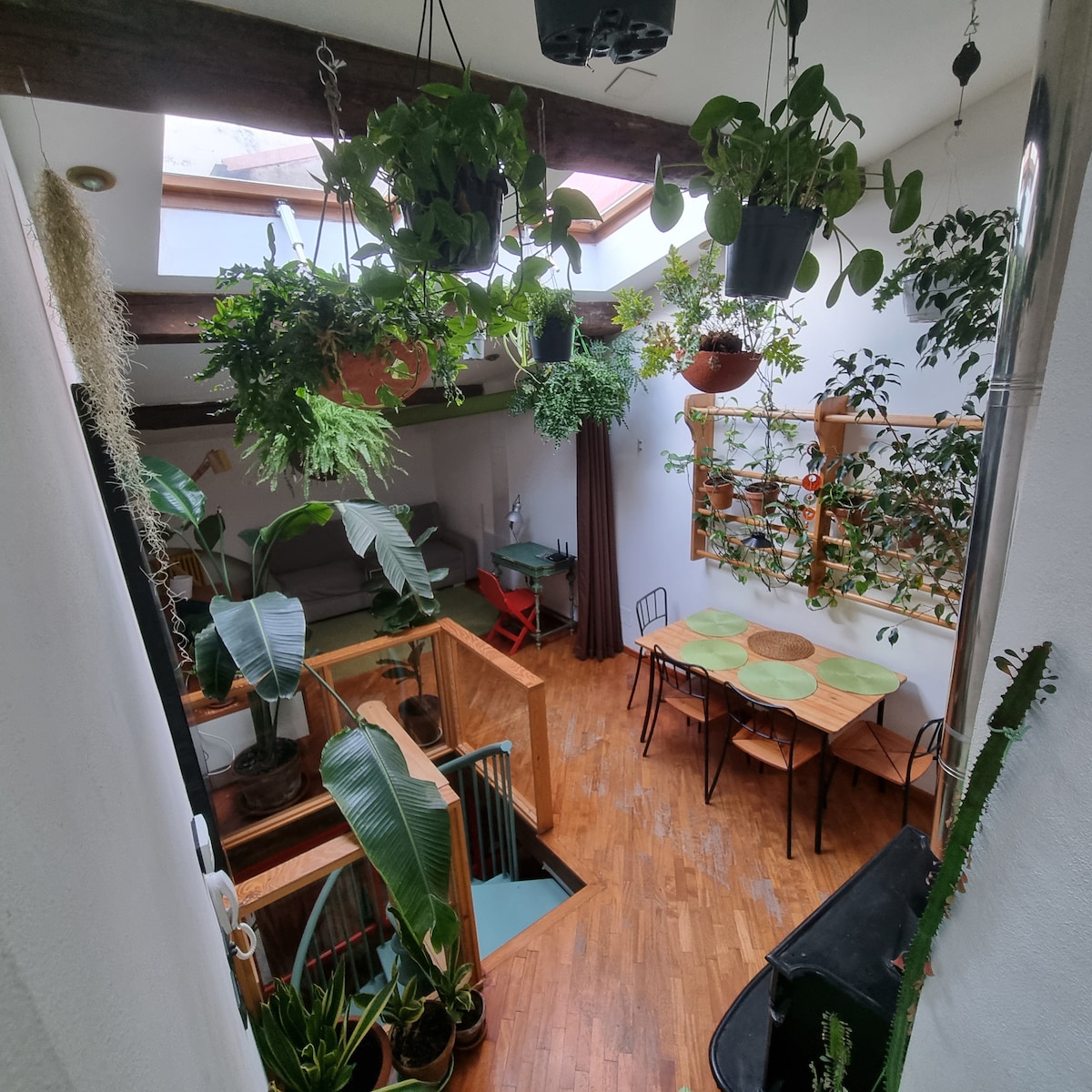 An old tower house in the heart of Pisa. A fully equipped stainless steel kitchen with espresso machine and kettle. The interiors blends wooden beams, steel and glass with a swinging hammock, designer lamps, a turntable and an extensive library of art and illustration books. The bedroom is accessed via an internal staircase, while the apartment is located in the attic (3rd floor) of a historic building: the staircase is a bit steep, so unfortunately it may not be comfortable for everyone.