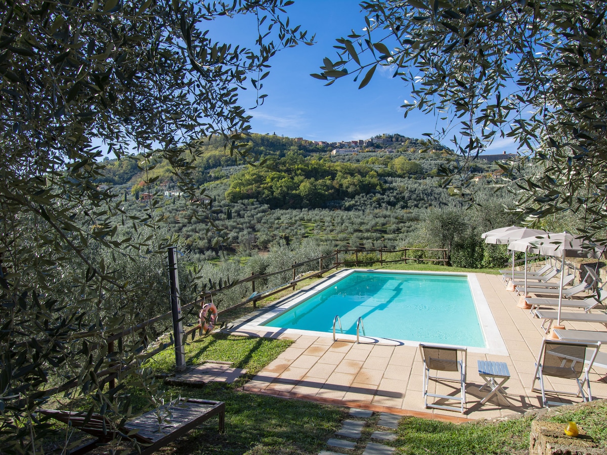 Charming Retreat for Two, 15 Minutes from Vinci Escape to a cozy hideaway perfect for couples seeking relaxation and comfort. Enjoy a private garden and a shared travertine pool with stunning views of the Tuscan countryside—especially magical at sunset. Ideal for romantic, slow-paced weekly stays. We live on the property with discretion and are happy to assist if needed. A car is required to reach the house.
