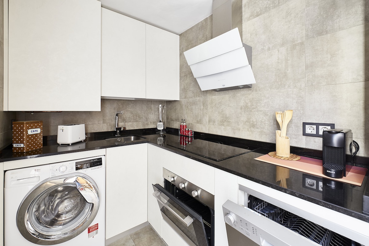 El Plaza de España es un cómodo apartamento para 2 personas, con una decoración elegante y todas las comodidades necesarias para que tu estadía sea perfecta. El apartamento consta de un dormitorio doble con armarios, un salón con un cómodo sofá, zona de comedor, baño completo con amplia ducha y una cocina totalmente equipada con vitrocerámica, horno microondas, lavavajillas, lavadora, cafetera Nespresso, tostadora, hervidor de agua, vajilla y utensilios de cocina.