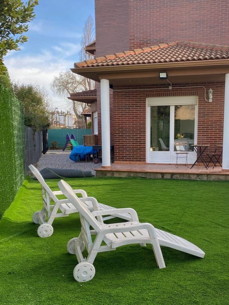 Casa independiente, grande, completamente equipada, jardin y piscina privada, zona natural, segura y muy tranquila, ideal para vacaciones en familia, próxima a Madrid. Dentro de la urbanización se puede practicar deportes como el tenis, squash, paddle, natación. Varios campos de Golf alrededor de la casa.