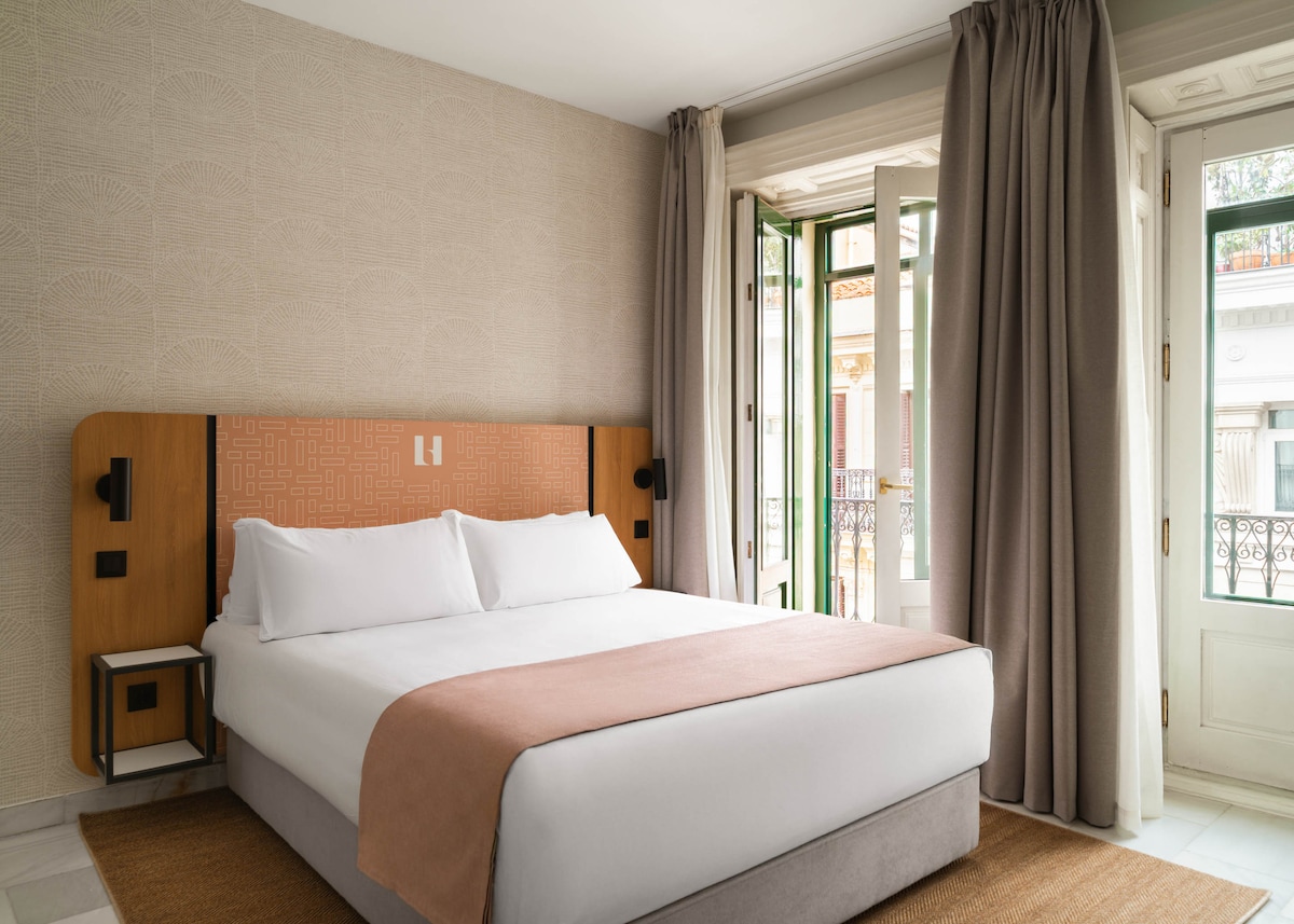 Eric Vökel Atocha Suites presents 60 m² of pure design, featuring two double bedrooms, two bathrooms (including one en suite), a stylish living/dining area, and a fully equipped kitchen. Most importantly, it offers ample space to ensure maximum comfort. Maximum capacity: 6 people (double sofa bed for 2 guests) For stays of 7 nights or more, weekly housekeeping is included. Additional cleaning services can be booked at an extra cost. Bed linen and towels included.