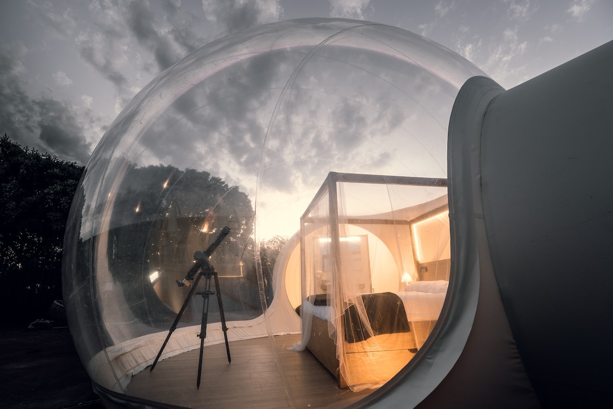 Esta experiencia tiene el desayuno incluido en el precio! Esta nueva experiencia consta de una cúpula de policarbonato totalmente resistente y rígida. Esta suite cuenta con una cama de dos metros, sistema de audio bluetooth, bañera, ducha y WC, aire acondicionado, calefacción nevera y microondas. Nuestro jardín cuenta con una terraza exterior totalmente equipada además de una zona chill-out y photocall. *Es responsabilidad de el cliente ajustar la temperatura interior de el alojamiento.*